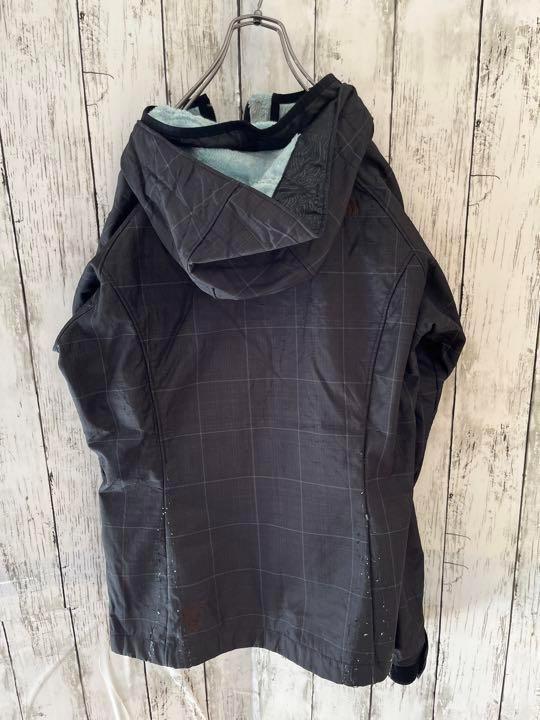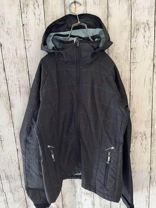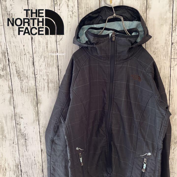 【レア】ノースフェイス ナイロンジャケット マウンテンパーカー レディース Mサイズ 裏ボア 刺繍ロゴ チェック チャコールグレー USA規格