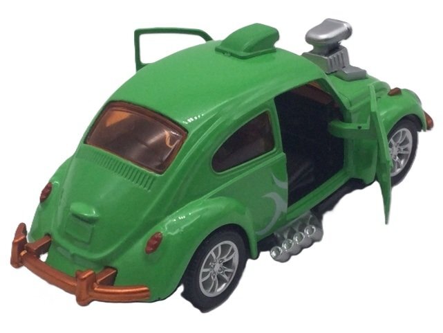 メタリックグリーン 1/36 ワーゲン ビートル V8カスタム仕様 ミニカー プルバック 新品 両サイドドア開閉