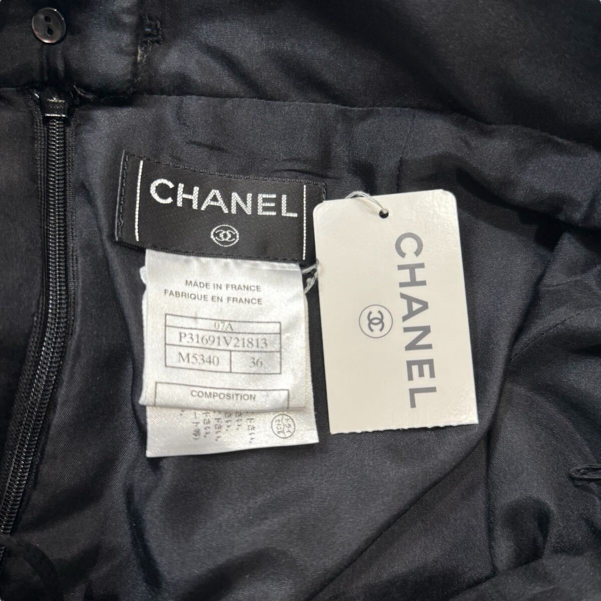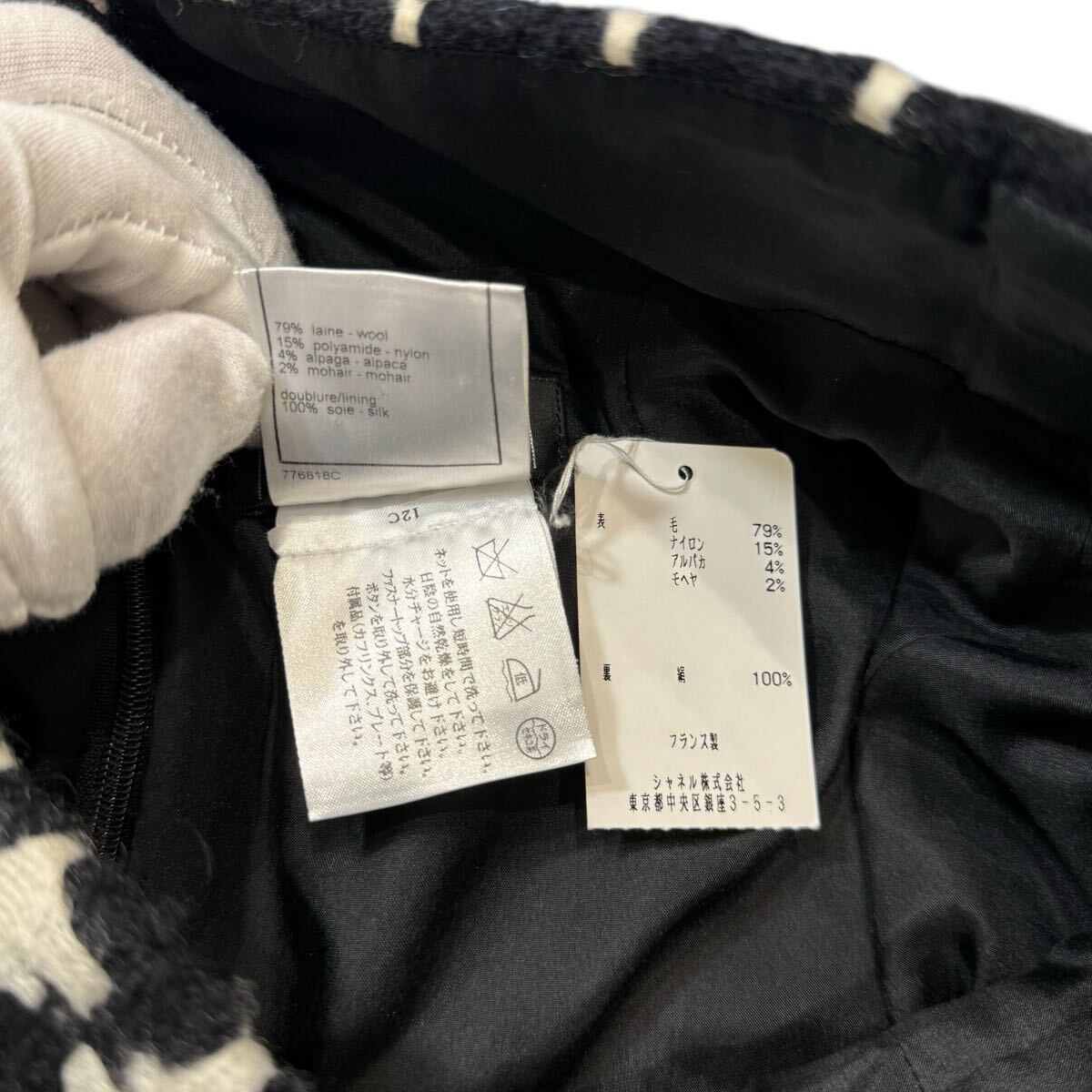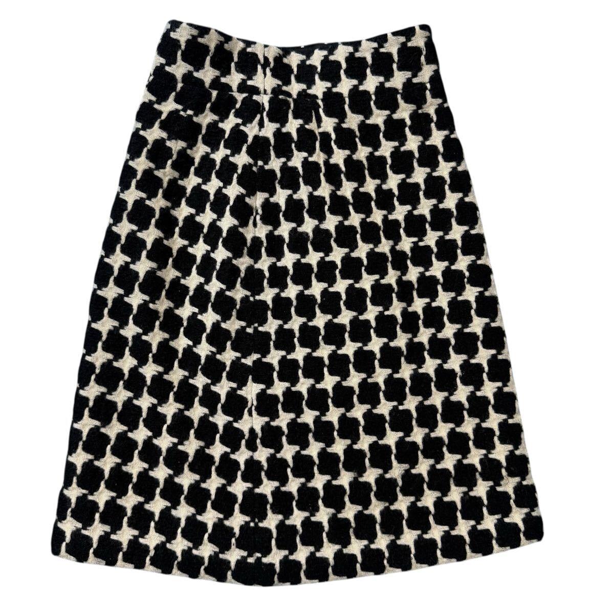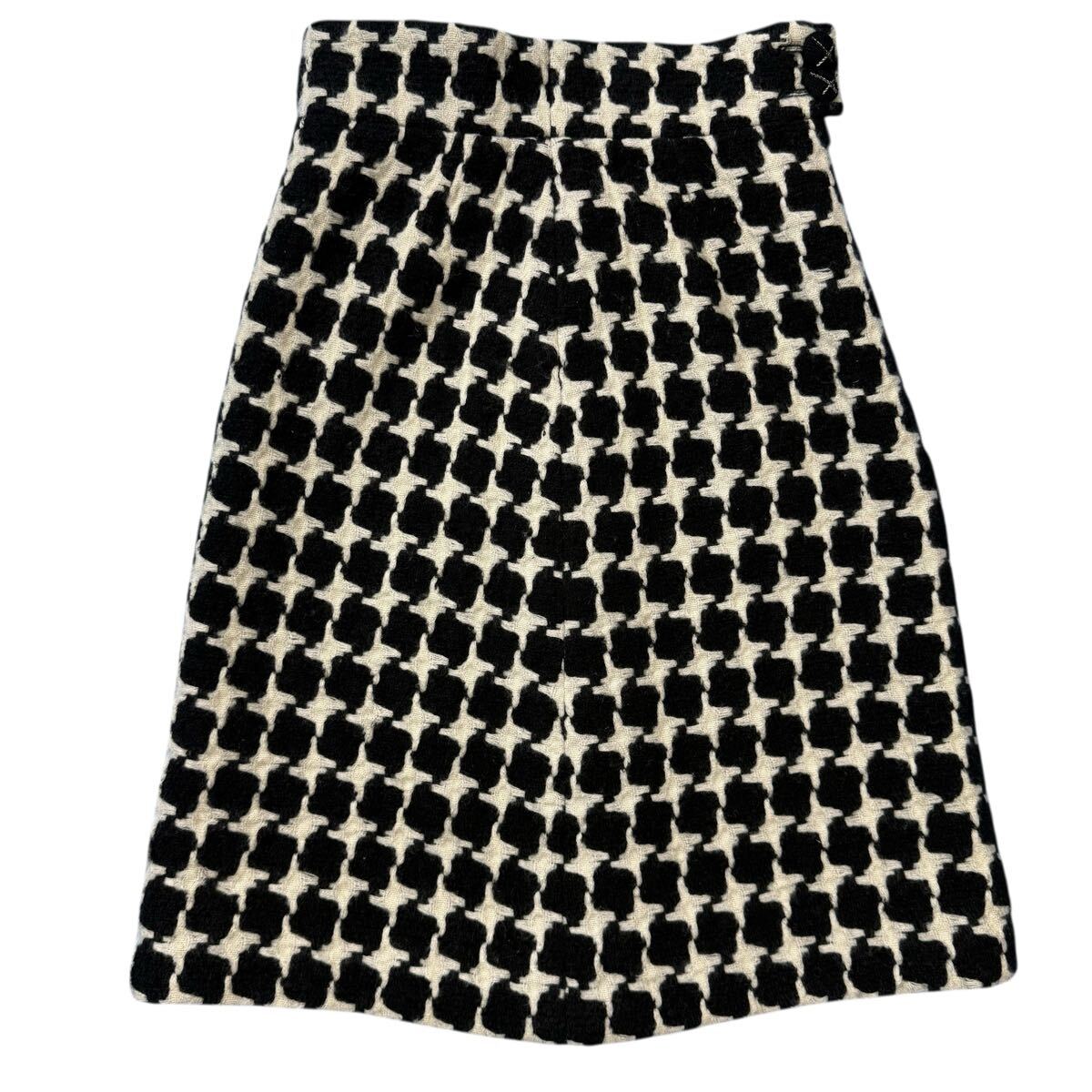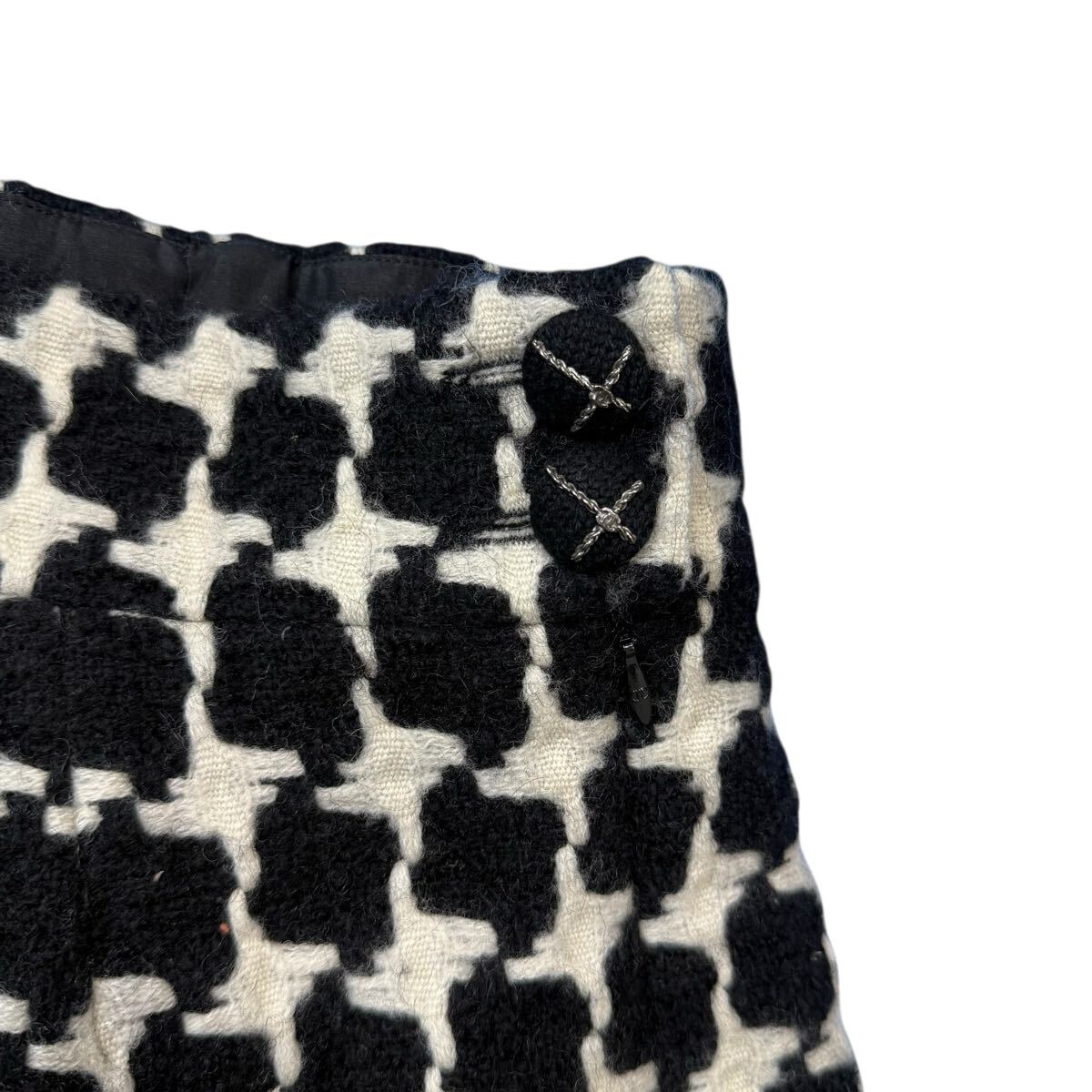 大胆な千鳥格子パターンが特徴のツイードスカートになります。クラシックな柄を、モノクロのコントラストと立体的なツイード素材で表現することで、モダンアートのような視覚的なインパクトを与えています。ただの柄物ではなく、シャネルならではの上質なツイードが織りなす凹凸感が、奥行きとリュクスな質感を生み出し、一目でそのクオリティの高さを感じさせます。ウエスト部分のさりげないボタンディテールがメゾンのアイデンティティを静かに主張しています。
