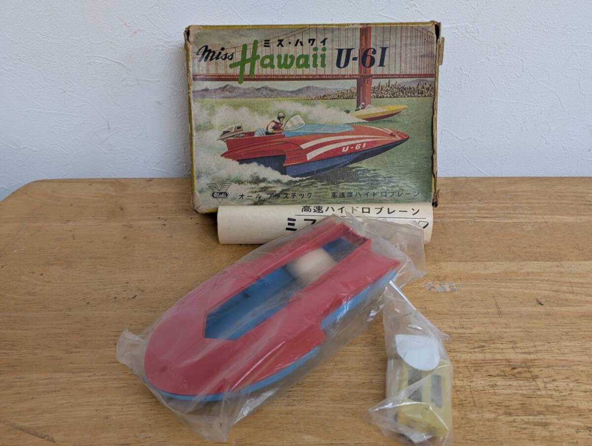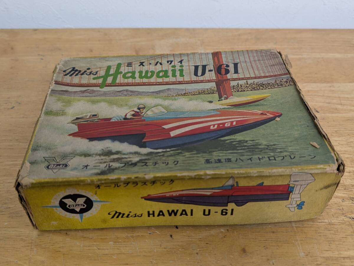 オオタキ(約20cm)高速ハイドロプレーン ミス ハワイ U-61 船外モ―タ―式です。箱は汚れ、壊れ、ヤブレがあります。袋部品未開封です。船外モ―タ―は付属しません。欠品があってもご容赦下さい。興味ある方いかがですか。