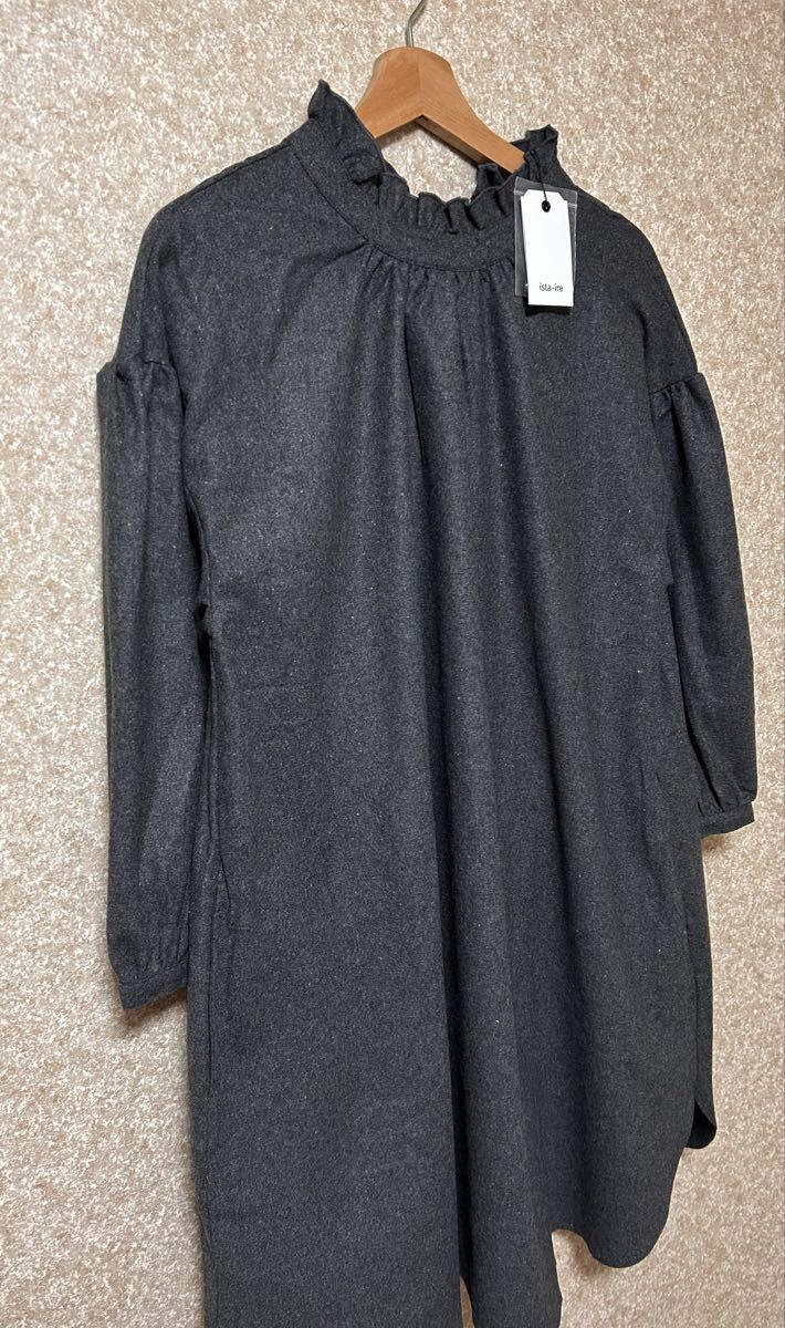 ista-ire(イスタイーレ)の大きいサイズのワンピースです。試着のみで未使用です。袖元とバック部分にボタンがついており、両サイドにポケットがあります。お色味はグレー系で写真5枚目が比較的実物と1番近いお色味です。サイズはLLですが大きめのお作りですので普段3L、4Lサイズを着用の方でも着用可能かと思います。平置きで計測したものを記載しておりますのでご確認の上ご購入ください。ジップロックに入れ折りたたんで圧縮して梱包しますので、配送の際に出来てしまう多少の皺はご了承ください。
