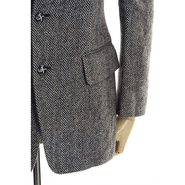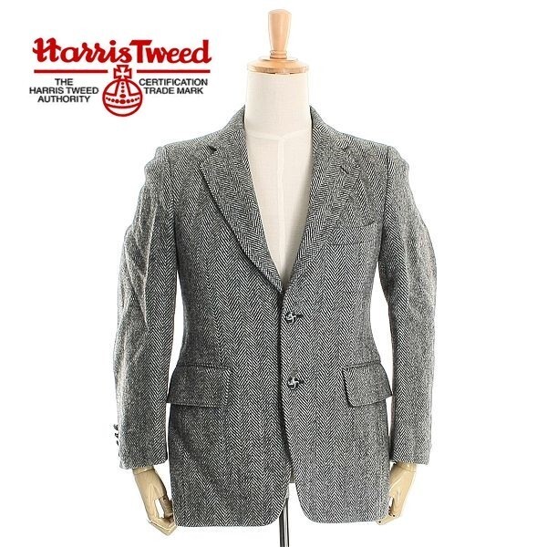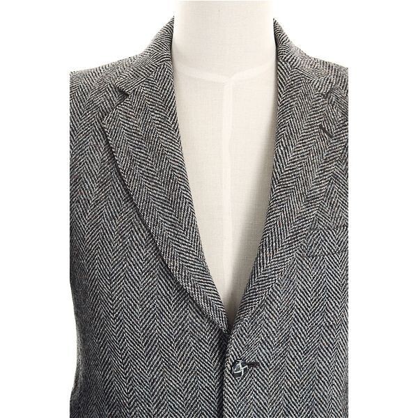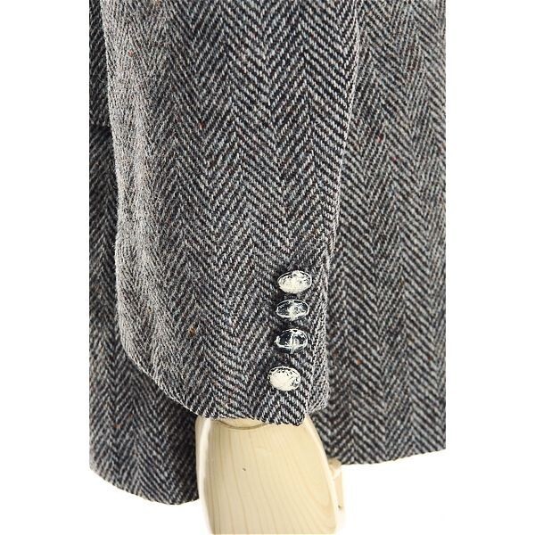 A4686/ビンテージ 80s 美品 秋冬 総裏 Harris Tweed ハリスツイード ウール ヘリンボーン テーラード シングル2BジャケットS程 灰色/メンズ