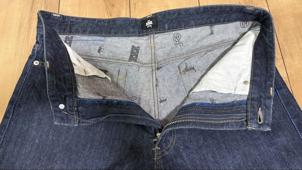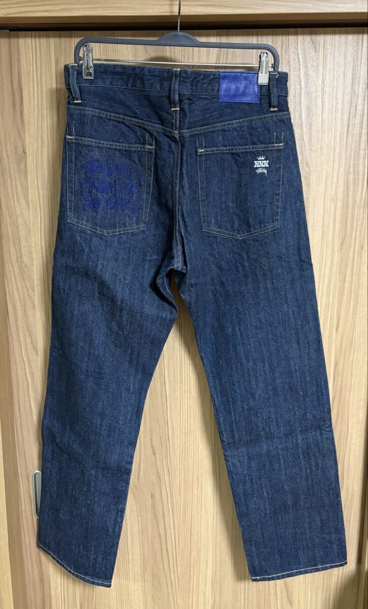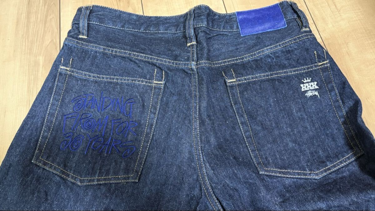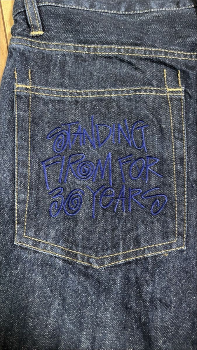 ステューシー 30周年記念モデル ストレートデニムパンツになります。刺繍や裏地にもプリントが見られる等細部までこだわった作りです。