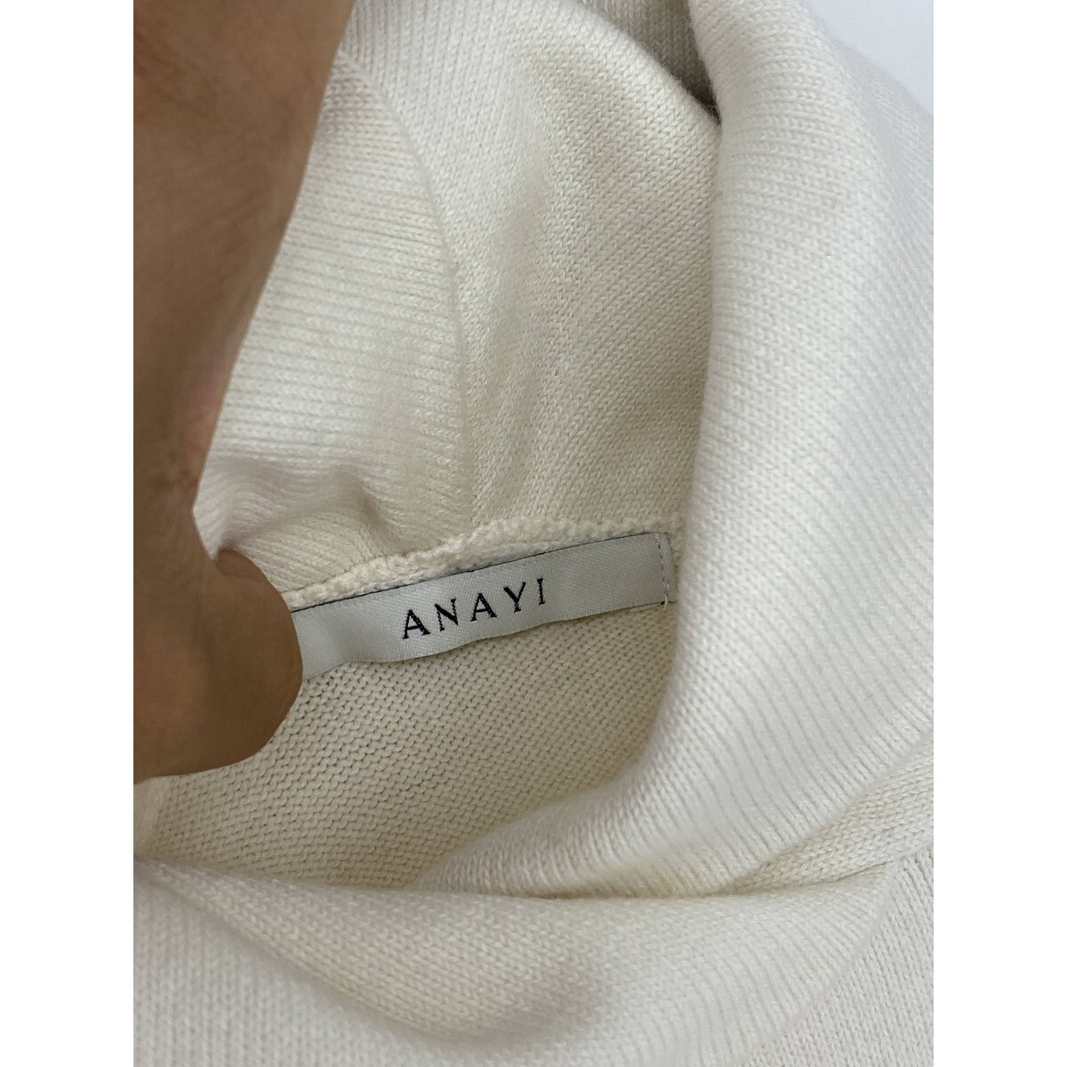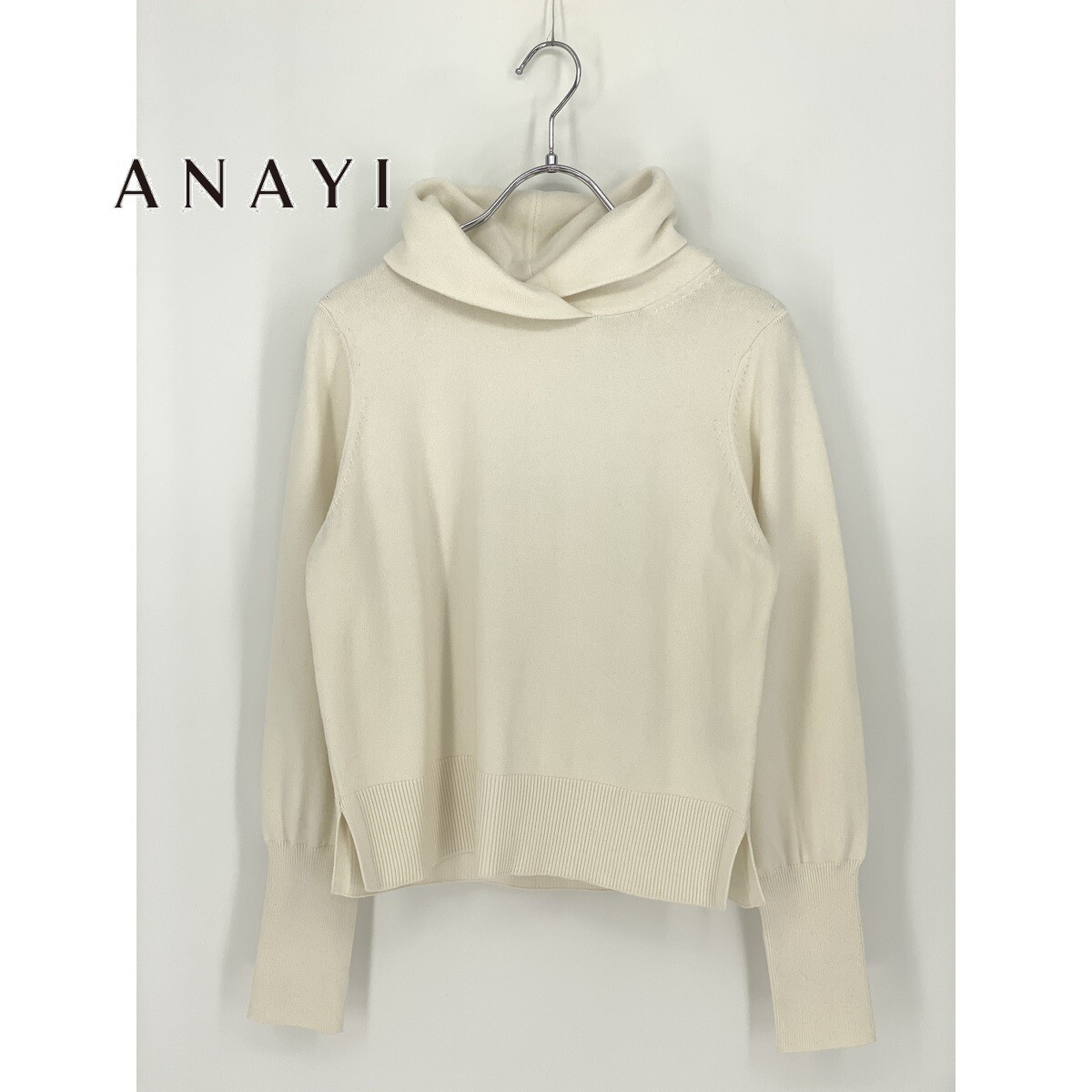 B0539/美品 ANAYI アナイ 23ss コットン カシミヤ ハイネック プルオーバー フード 長袖 ニット セーター パーカー 38 M程 白 レディース