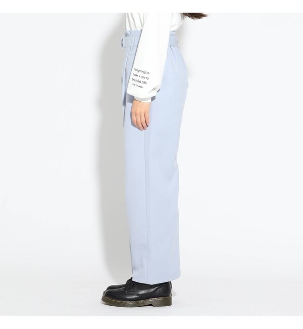 ラウンドバックルがポイントの、秋冬コーデに合わせたいベルト付パンツ。