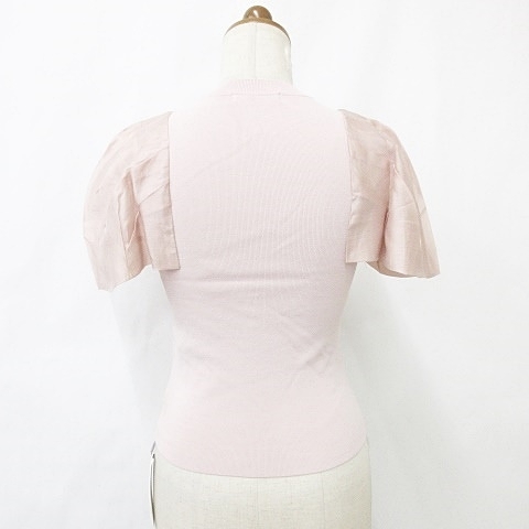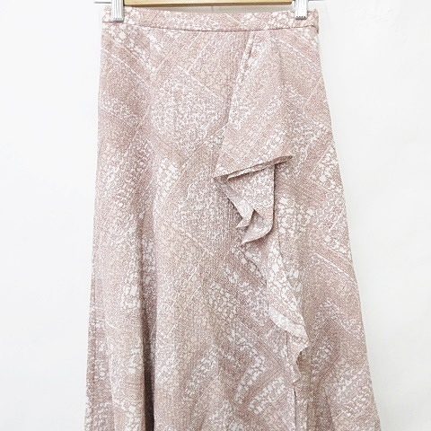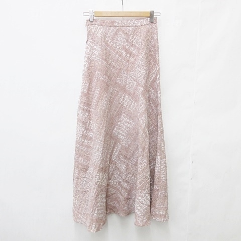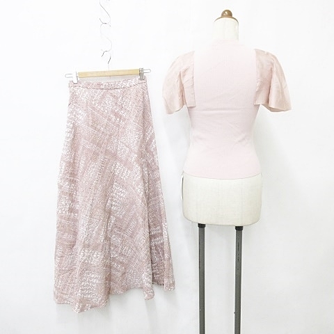未使用品 スナイデル SNIDEL ニット スカート 2点セット 半袖 丸首 ボリュームスリーブ フレアー ロング 総柄 ピンク F 0 レディース
