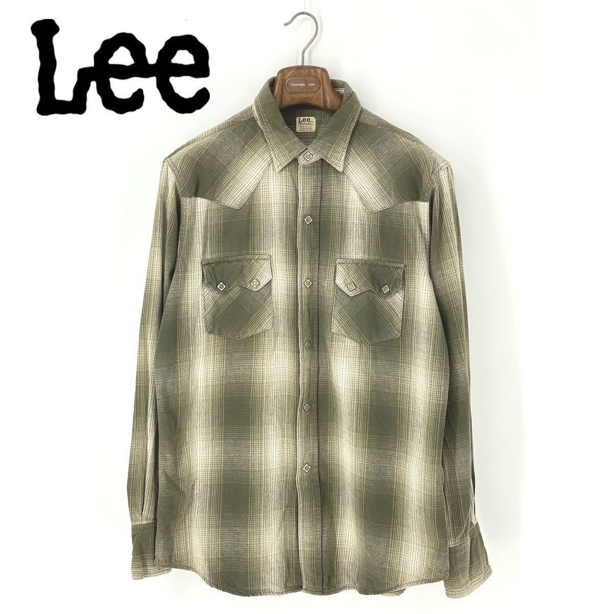A7681/美品 春夏 Lee リー WESTERNER SANFORIZED スナップボタン チェック 長袖 ウエスタン ワーク カジュアル シャツ XL 緑/メンズ