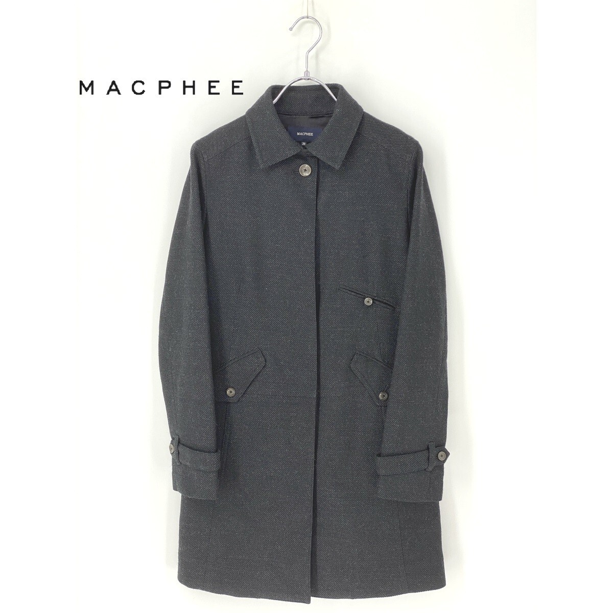 A9942/極美品 秋冬 TOMORROWLAND トゥモローランド MACPHEE ウール 比翼 ロング 膝丈 ステンカラーコート 38 M程 灰色 レディース