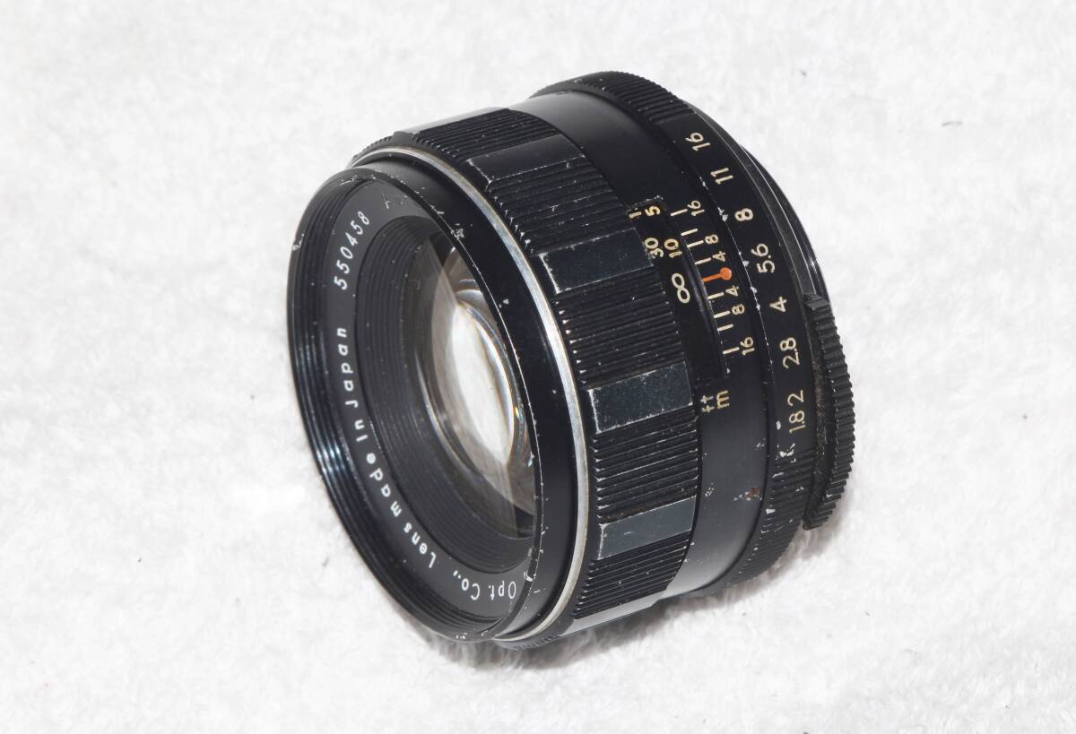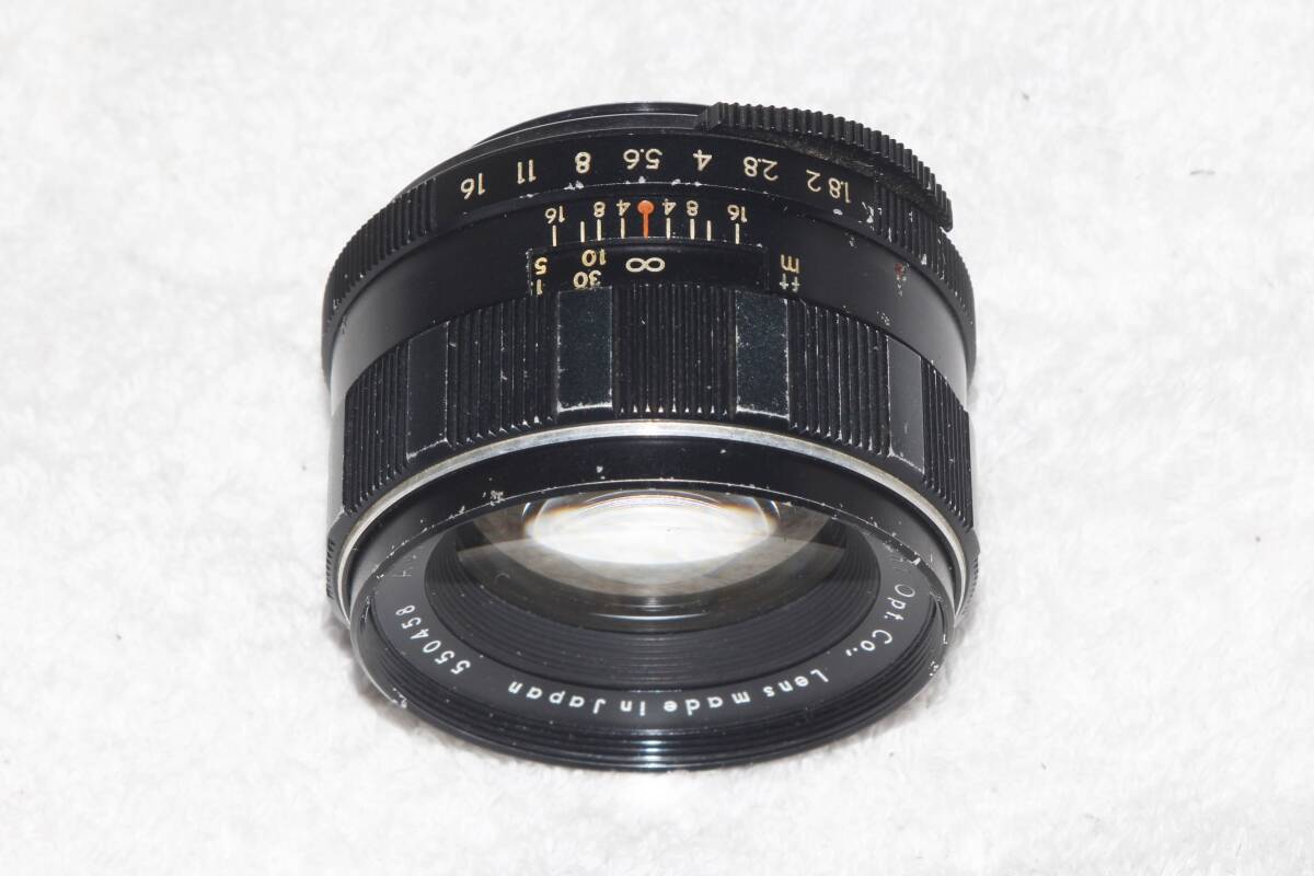 商品説明 | ペンタックス オートタクマー AUTO TAKUMAR 55mm F1.8 です。 M42スクリューマウントです。 レンズはカビ、キズ、クモリなどは感じられず良好です。微細なチリの混入はありますが写りには影響ないレベルです。 外観も概ね良好です。少しスレあります。 ヘリコイド・絞りの動作は良好です。 レンズ本体のみとなります。キャップは付属しません。 発送はゆうパック(元払い60サイズ持込)、もしくはレターパックプラスです。 | |