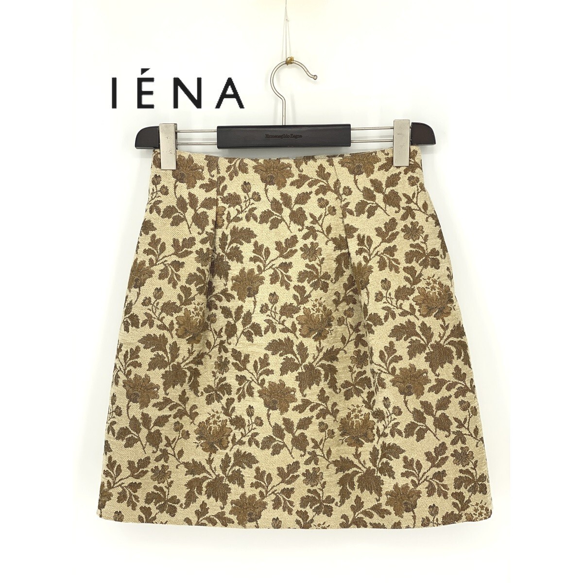 B0617/極美品 IENA イエナ ベロア ツイード 花柄 総柄 ニット ミニ 膝丈 プリーツ タイト 台形 スカート 38 M程 ベージュ レディース