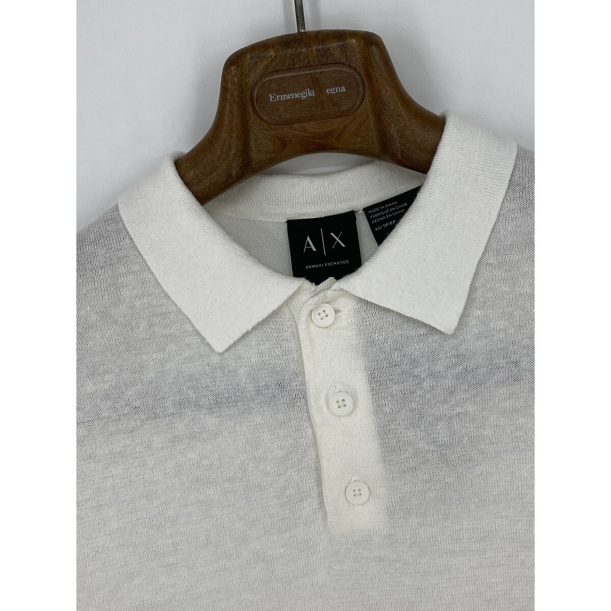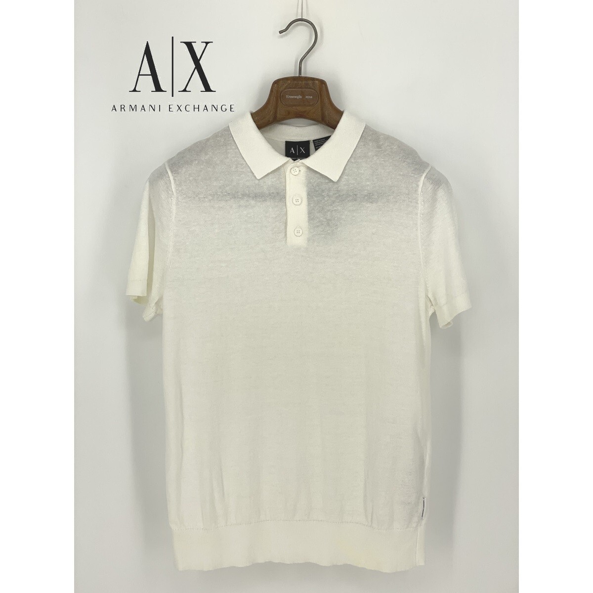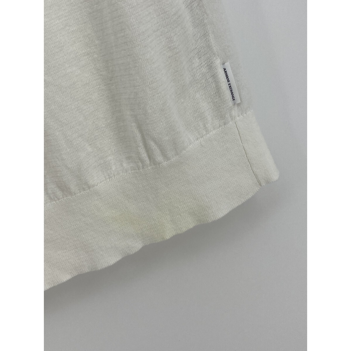 B0737/訳あり 新品タグ付き ARMANI EXCHANGE アルマーニ コットン リネン ヘンリーネック 半袖 ニット リブ セーター Tシャツ XS 白 メンズ