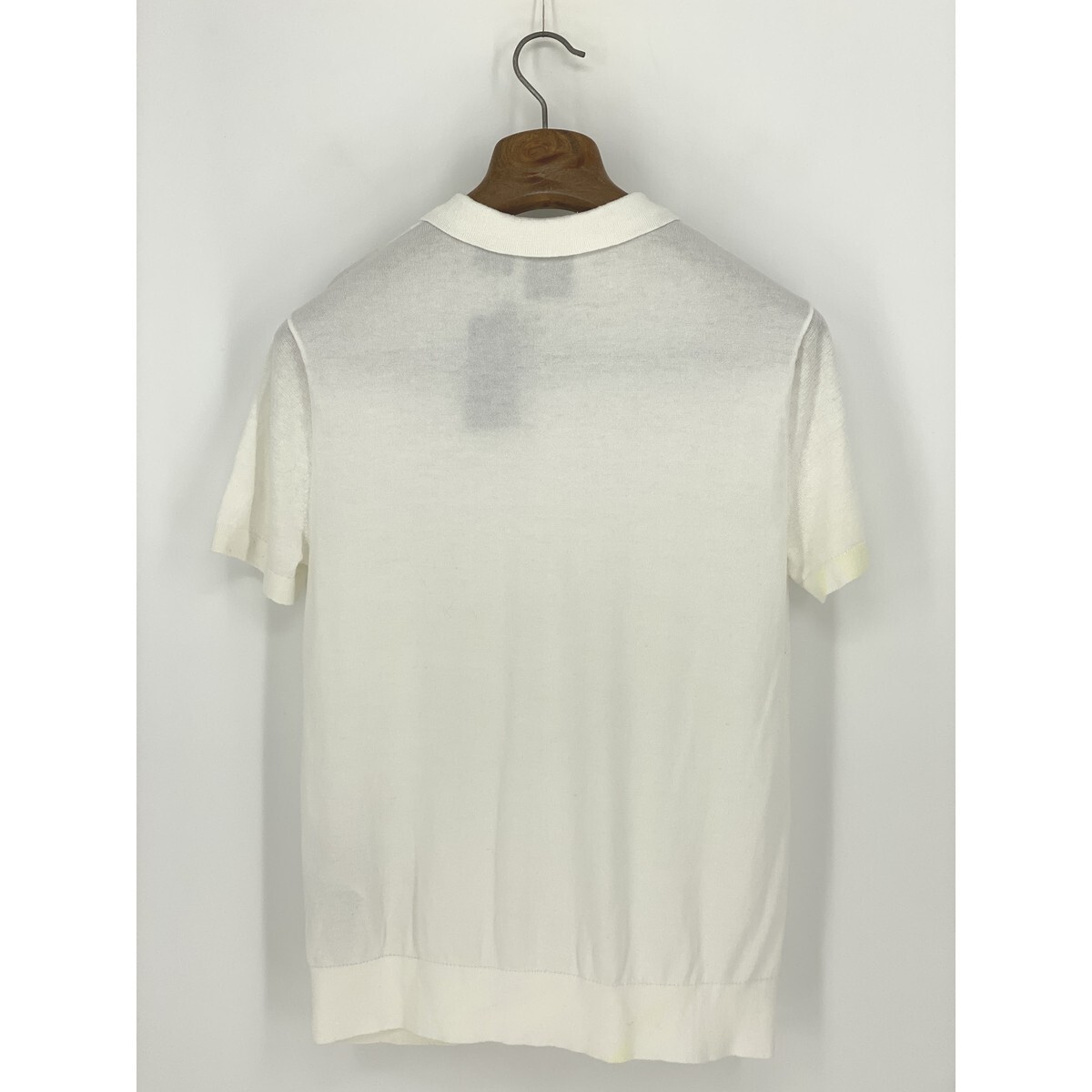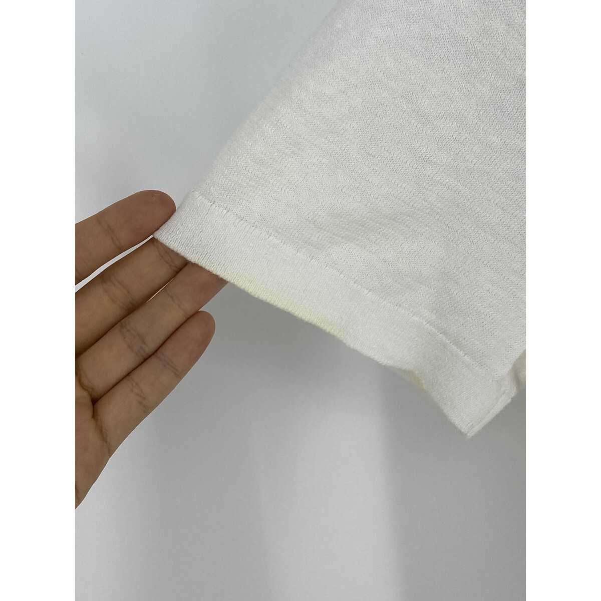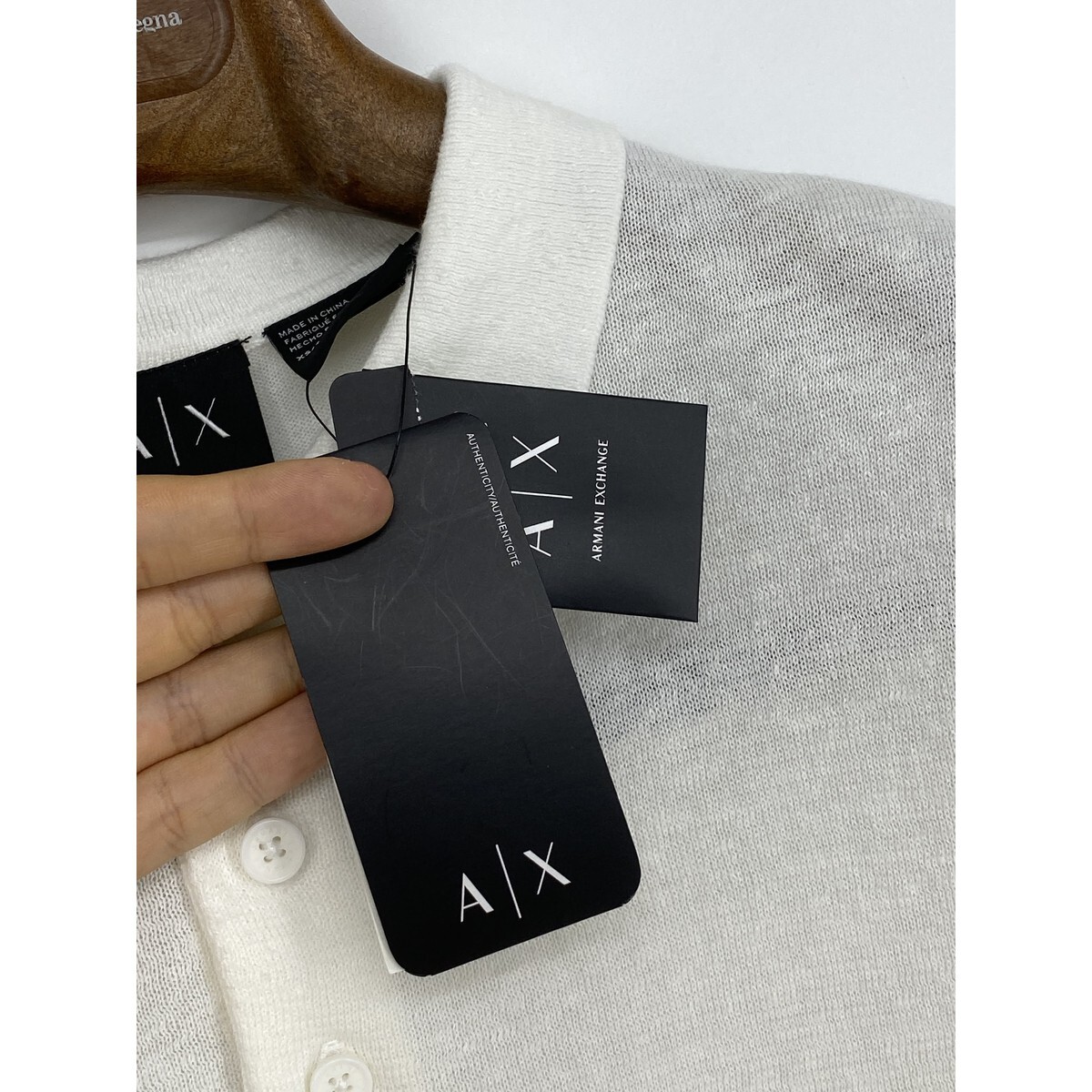 B0737/訳あり 新品タグ付き ARMANI EXCHANGE アルマーニ コットン リネン ヘンリーネック 半袖 ニット リブ セーター Tシャツ XS 白 メンズ