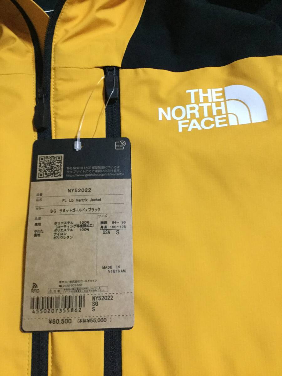 ノースフェイスのFL L5 Ventrix Jacket、ブラックxサミットゴールド、Sサイズになります。