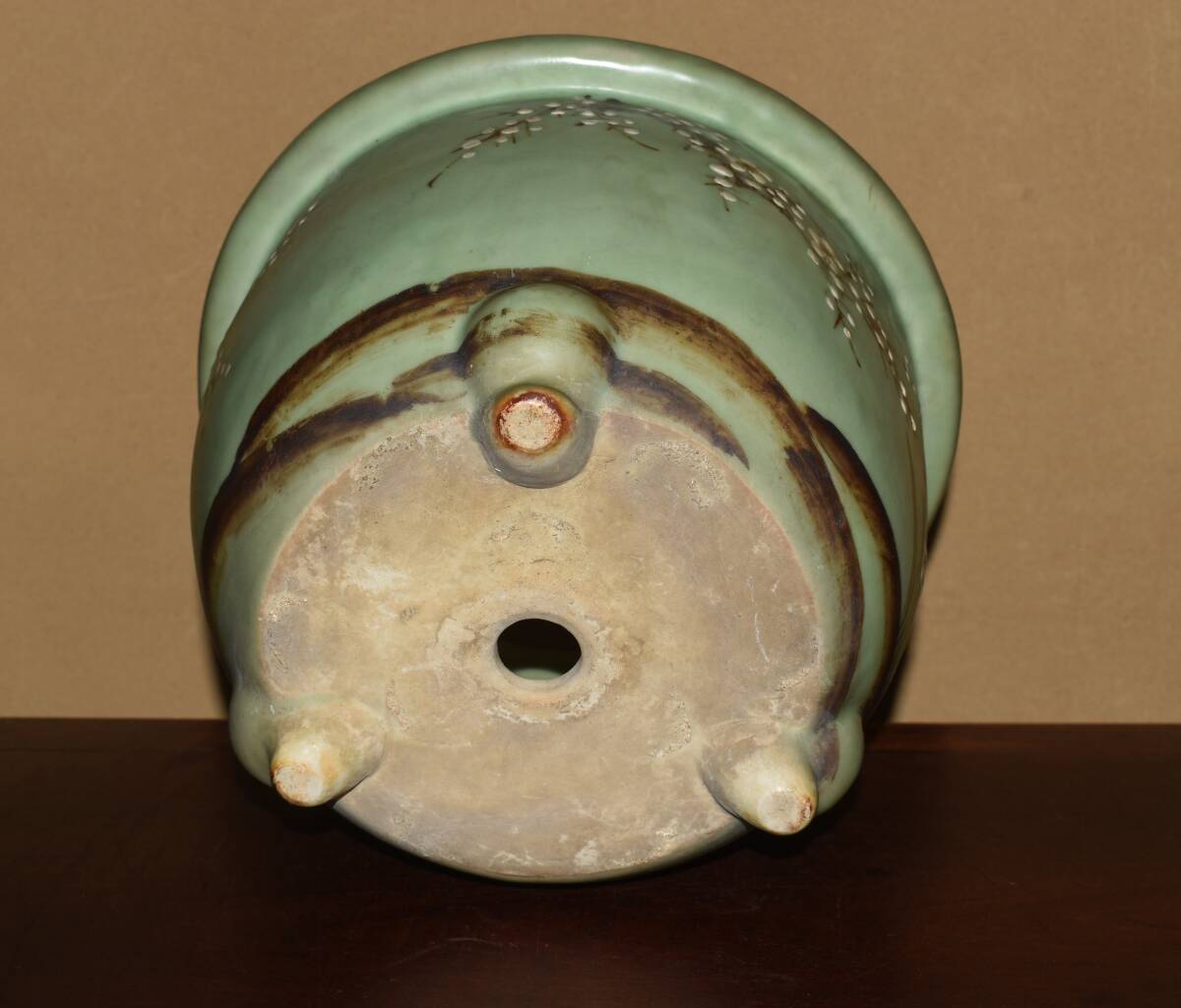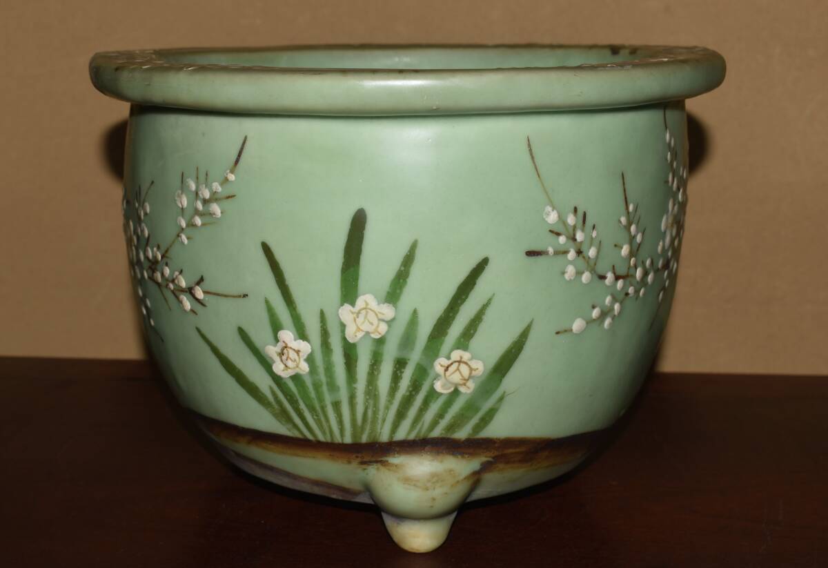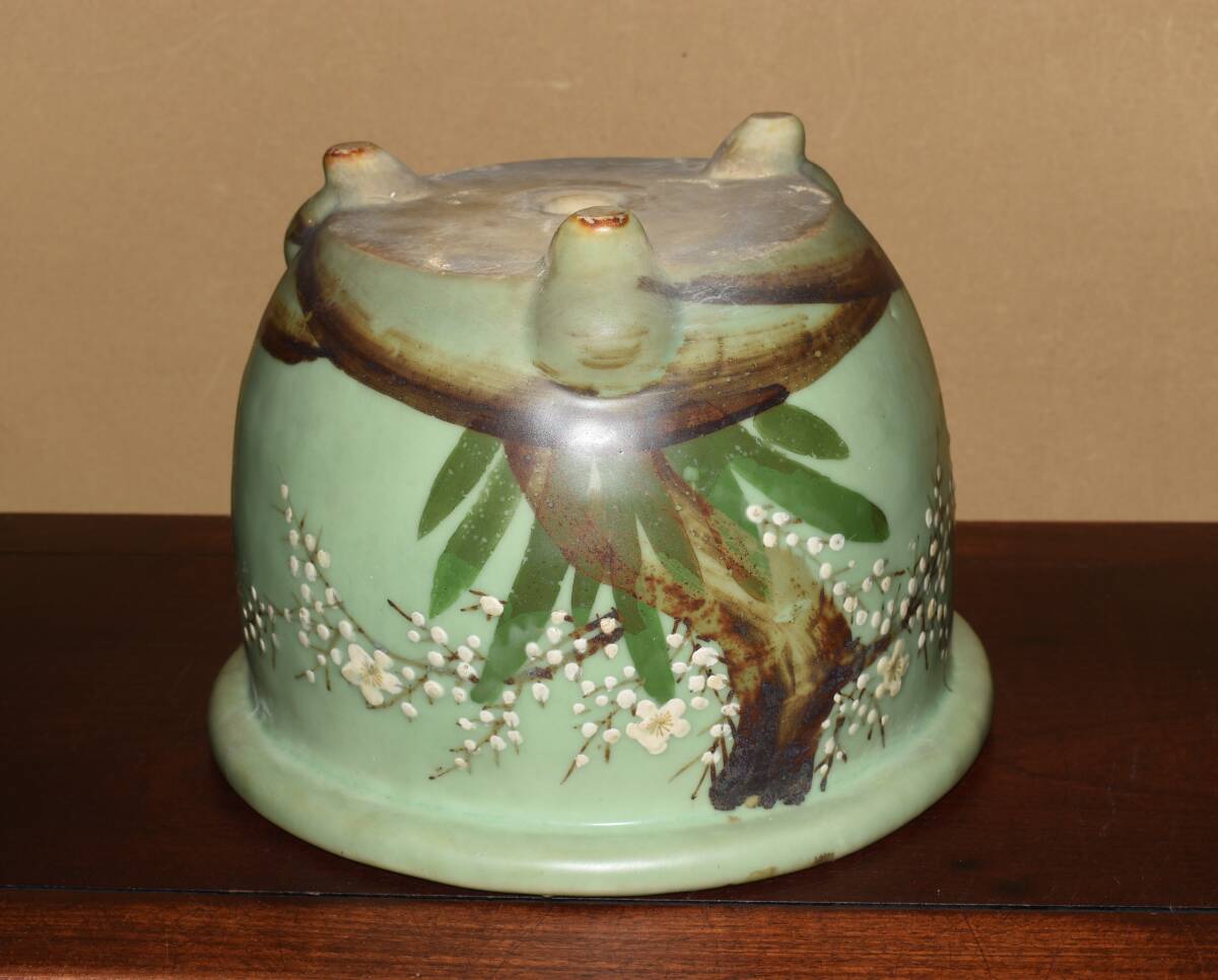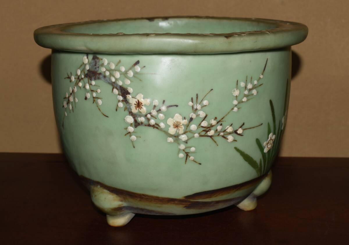 サイズ31,0x22,5cm 人気古窯作家<尾張焼・青磁・色絵梅図・時代乗り抜群・発色抜群・実用性抜群・使い頃サイズ>外縁丸鉢・蘭鉢のご紹介です・・・古窯。時代抜群・・色絵の梅図が繊細に描き込まれ、実用にも優れた素晴らしい逸品です・目立つ傷はありません。・・ 大変古い物ですので縁・足等にホツ・スジ・カケ等がある場合がございます。 状態を良くご確認の上、ご入札宜しくお願い致します。。画像を良くご確認の上、御入札宜しくお願い致します。完品をお求めの方は入札をお控えお願い致します。*注意事項* オークション終了後48時間以内に必ずご連絡をお願いします。ご連絡がない時は、ご購入意思がないと判断し、落札者さま都合のキャンセルとさせて頂きます。再三のご連絡を差し上げても、ご連絡がない場合は、時点繰り上げとさせて頂きます。マイナス評価の多い方や新規の方を削除する場合がありますので、ご了承下さい。また、入札価格が低価格の場合は取消終了とさせて頂く場合がございますので、ご了承願います。古い物等ございますので小さな傷等は、見落とす場合がございますので、写真を良くご覧になり納得の上ご入札して下さい。また、完品をお求めの方は入札をお控えお願い致します。キズ・破損等のご連絡は商品到着5日以内にご連絡ください。それ以降は対応致しかねますので到着後、商品を必ずご確認ください。輸送中の事故(鉢が割れる、枝が折れる等)につきましては商品到着時に確認し取引ナビまたは、お電話にてご連絡下さい。 基本土日の発送は行っておりません。ご了承ください。