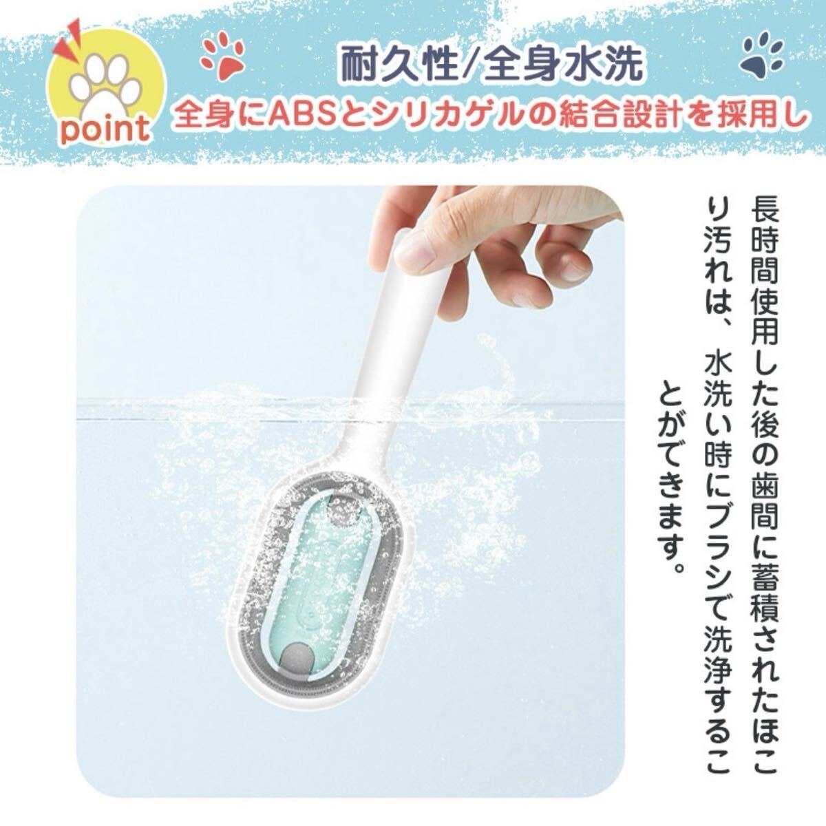 独自の水タンク設計を採用したコームで、水を入れた後、掃除しながらコーミングすることで静電気を防ぎ、表面の汚れをきれいにし、浮き毛も簡単に取り除きます。