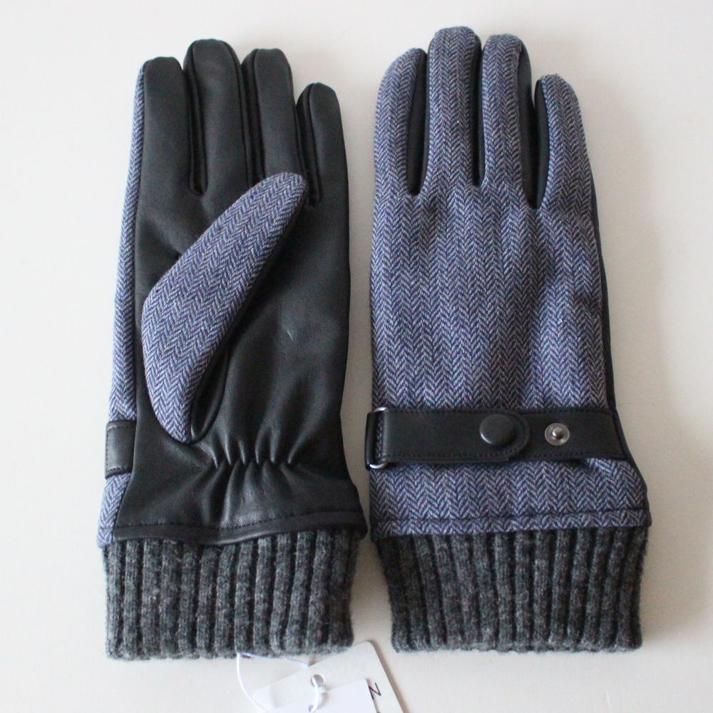 <素材> 甲部:ポリエステル60、アクリル22、レーヨン7、ナイロン4、毛3、コットン3、ポリウレタン1% 掌部:羊革 リブ部分:毛79、ナイロン21% 裏地:ポリエステル100% |