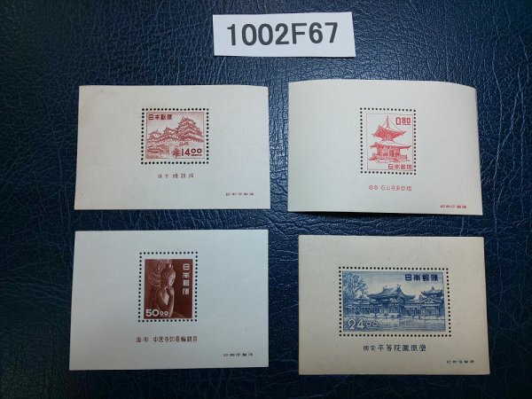 1002F67 日本切手 国宝小型シート4点まとめ 中宮寺如意輪観音 姫路城 平等院鳳凰堂 石山寺多宝塔 *詳細は写真参照
