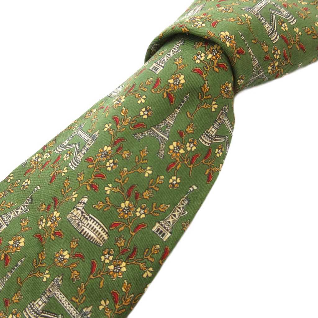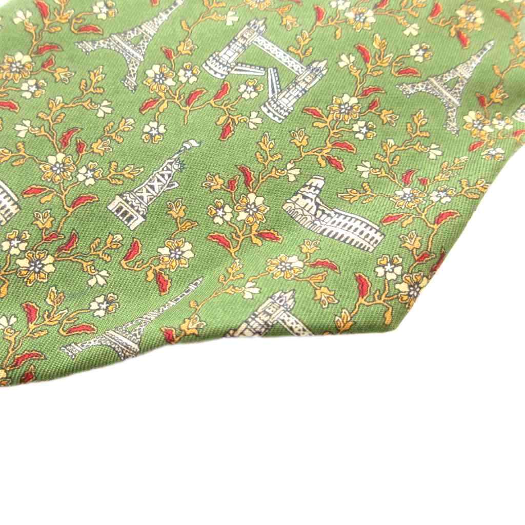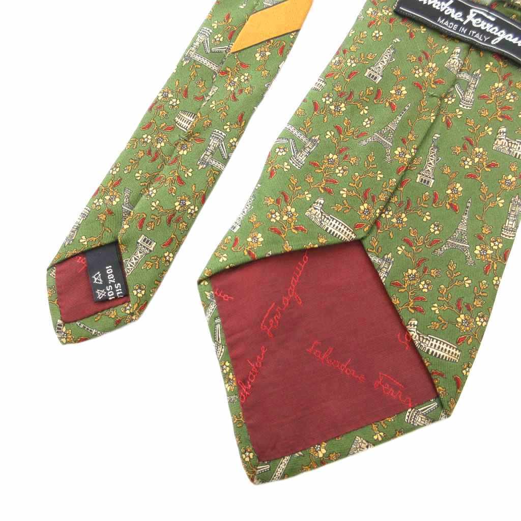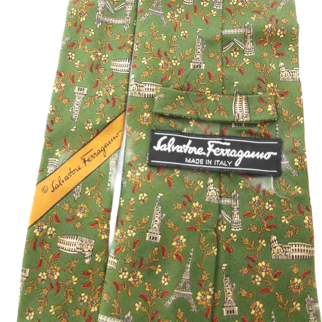 サルヴァトーレフェラガモ Salvatore Ferragamo ネクタイ ワイドタイ フォーマル 総柄 シルク 緑 グリーン /BS ■GY14 メンズ