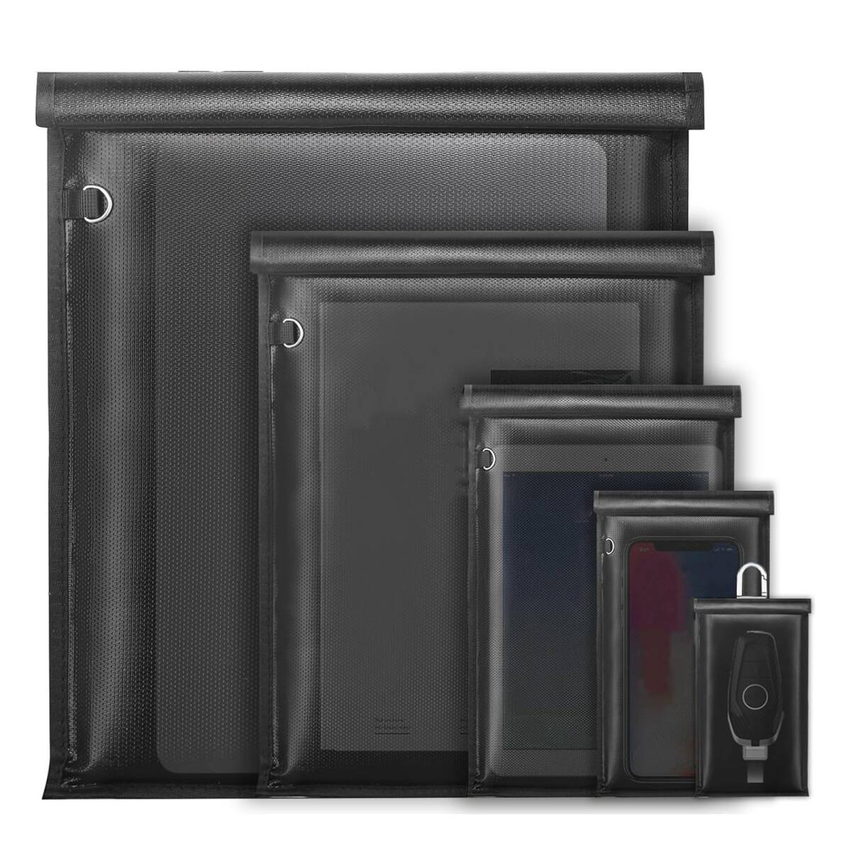 大容量: 5つの異なるサイズのファラデーバッグが含まれており、大型のラップトップ、書類、雑誌、タブレット、携帯電話、ラジオ、時計、カード、現金、車のキーリモコン、Bluetooth、パスポート、無線周波数識別デバイス、キーチェーンなどに適しています。さまざまなニーズを満たすことができます。