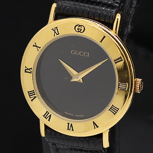 1円 箱付 稼働 グッチ 3000.2L QZ ブラック文字盤 レディース腕時計 IGR 1927000 10NGB