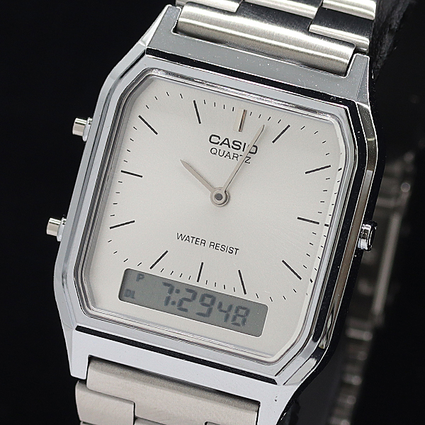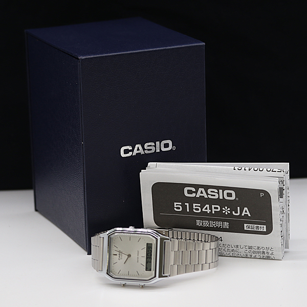 1円 保/箱付 稼働 良品 カシオ クラシック AQ-230 QZ シルバー文字盤 メンズ腕時計 1927000 10NGB MST