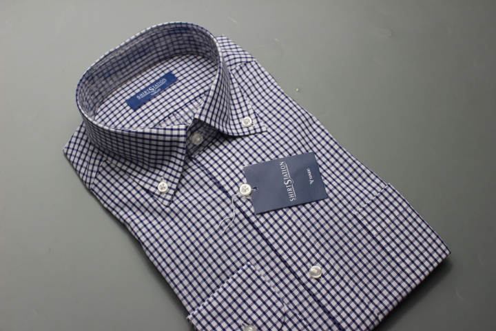 送料185円【新品】SHIRT STATION(山喜) BDワイシャツ /オックスフォード/綿100%/イージーケア M(39-82)紺ウィンドウペン007/UND109