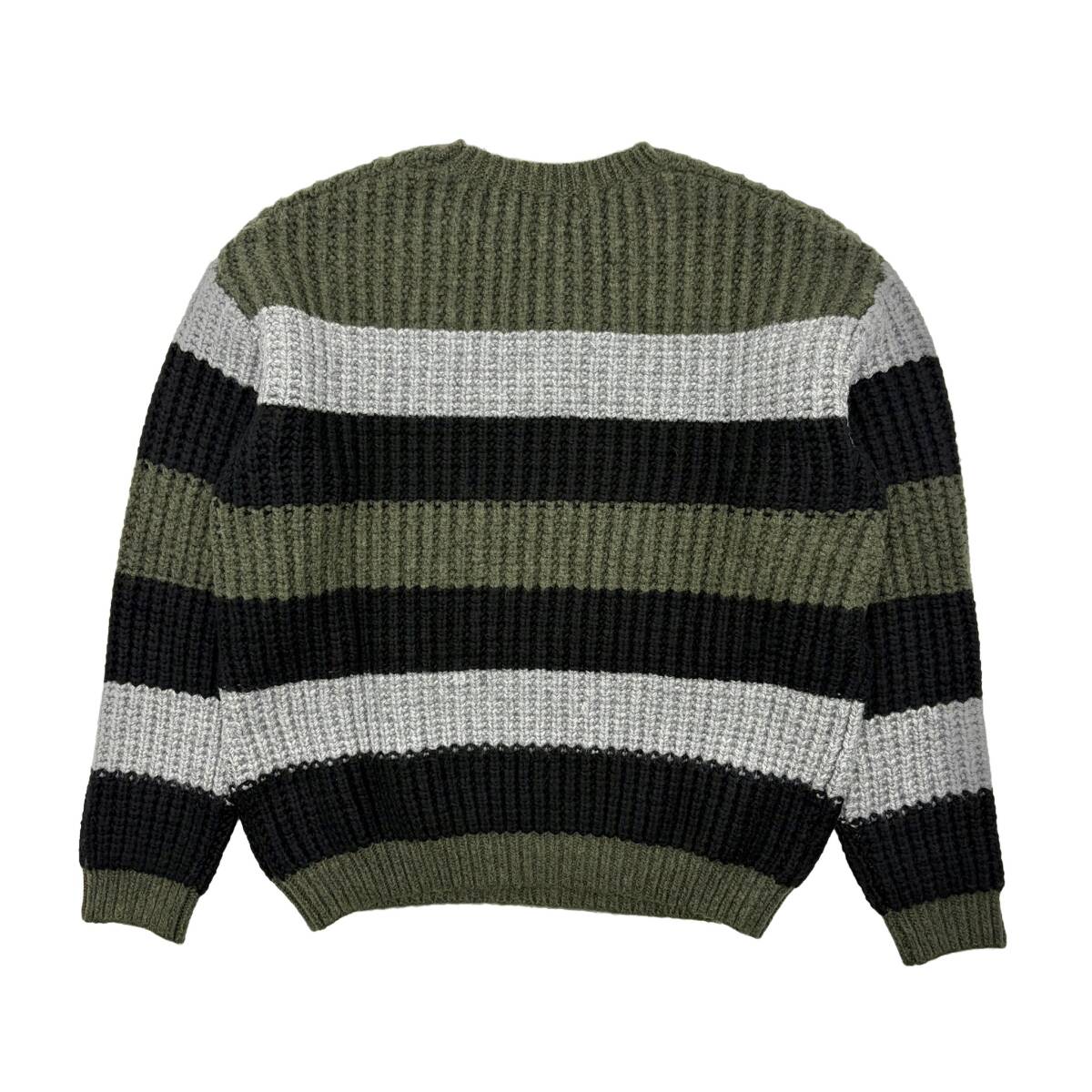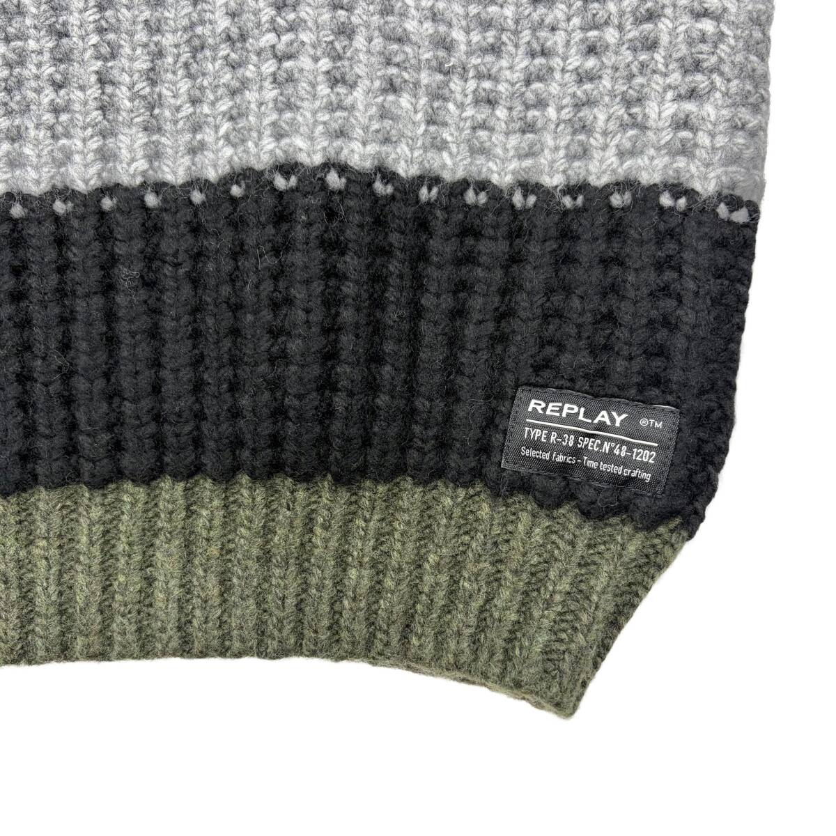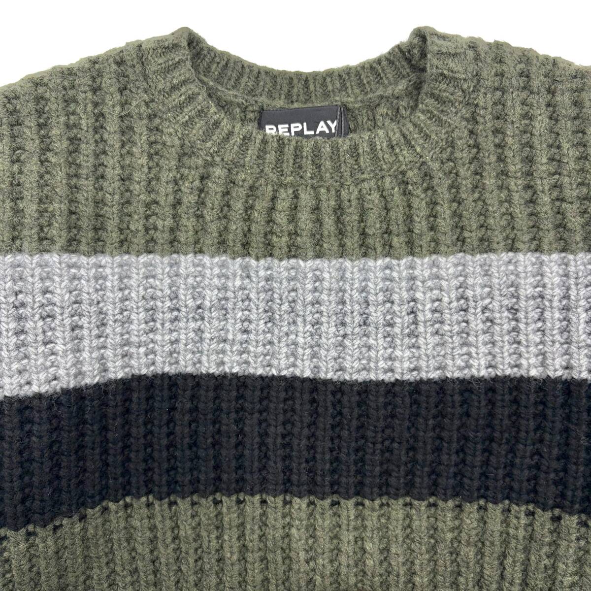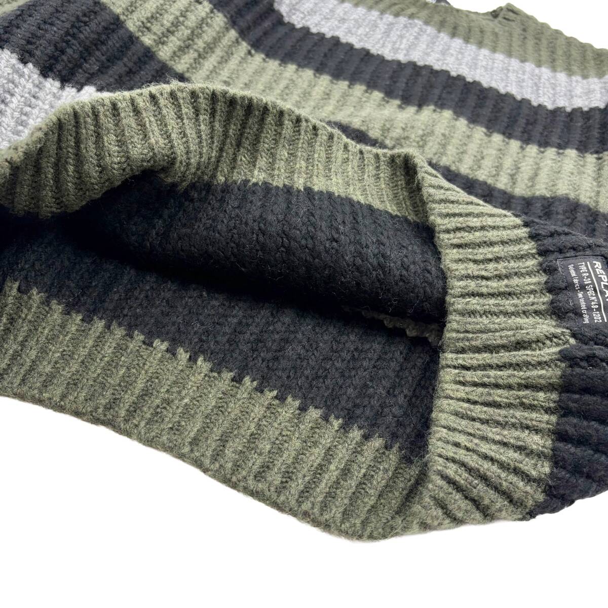 【サイズ選択】新品■定価37800円■REPLAY■ワイドピッチのボーダー柄ニットセーター■中厚ニット■リプレイ■グリーン/カーキ系
