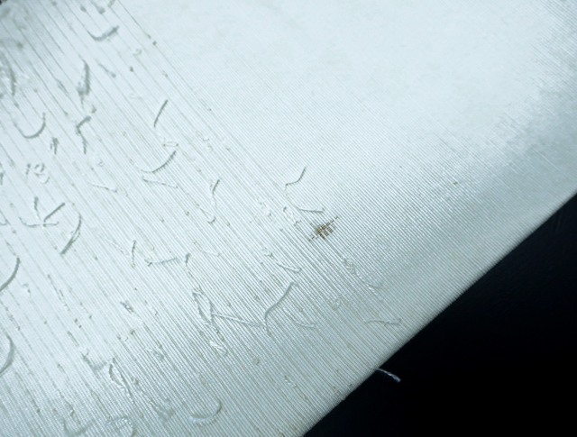 リサイクル商品のため、垂れ先や垂れ先裏、無地場など所々に薄汚れがございますが、着用可能なお品です。 地色は、アイボリーです。 1枚目の画像が近いお色かと思われます。 素材は正絹です。 |