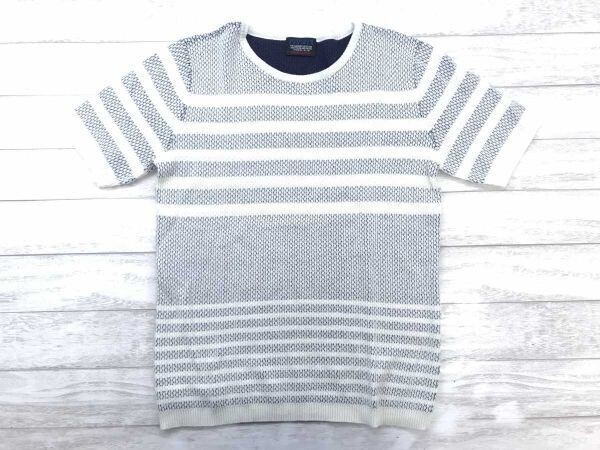 ニコルクラブフォーメン NICOLE CLUB FOR MEN トラッド マリン ジャガード パターンボーダー 半袖サマーニット トップス メンズ 46 白紺 です。