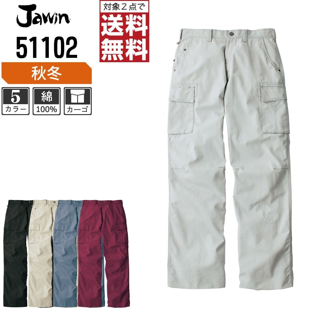 Jawin ジャウィン 秋冬 ノータック カーゴパンツ 綿100% デニム調生地 51102 色:ミストブルー サイズ:73 ★ 対象2点 送料無料 ★
