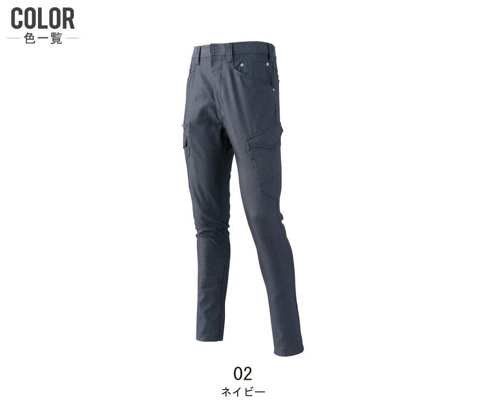 特長:国内素材/ドビー/制電/ストレッチ/ノータック/右ファスナー付カーゴポケット
