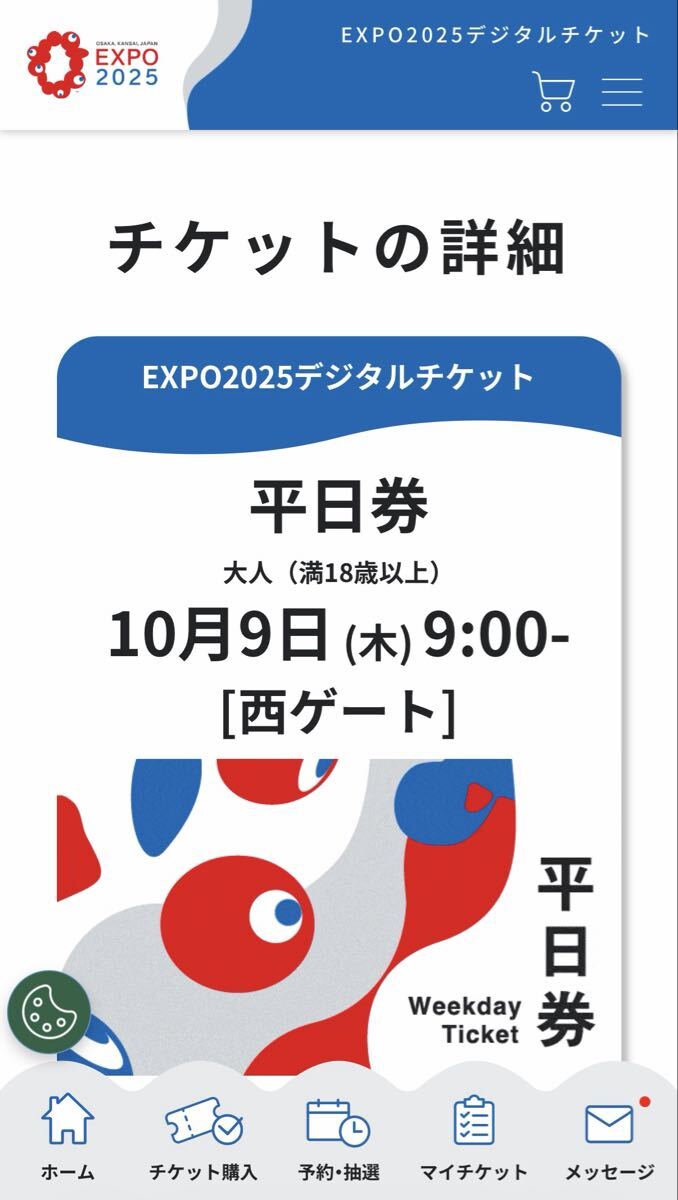 10月9日(木)9:00-西ゲートの入場予約済みです。