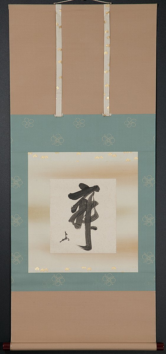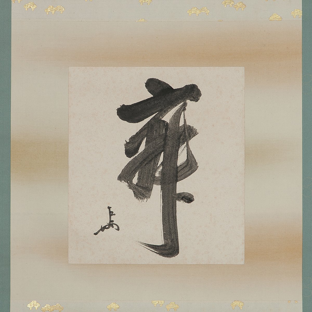 【五】表千家 無盡宗左 即中斎 一字書 紙本 墨 掛軸 箱付 茶道具 茶掛 真作