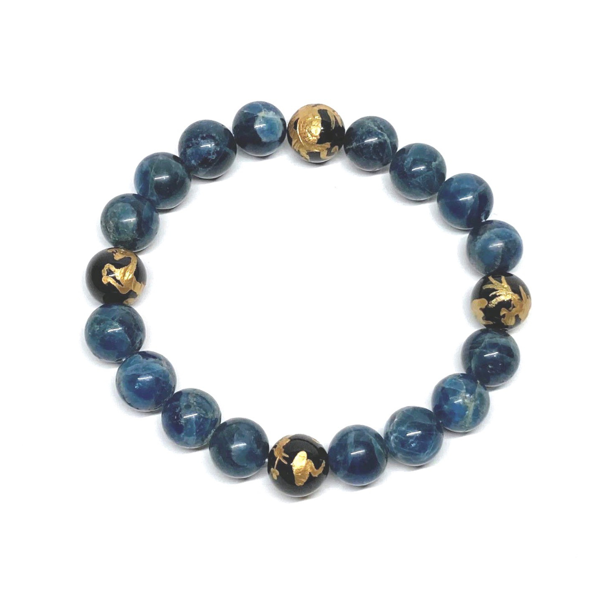10mm 四神獣金彫オニキス×アパタイト パワーストーン ブレスレット天然石 運気上昇 開運 幸運 金運 恋愛運 青龍 白虎 玄武 朱雀 ☆