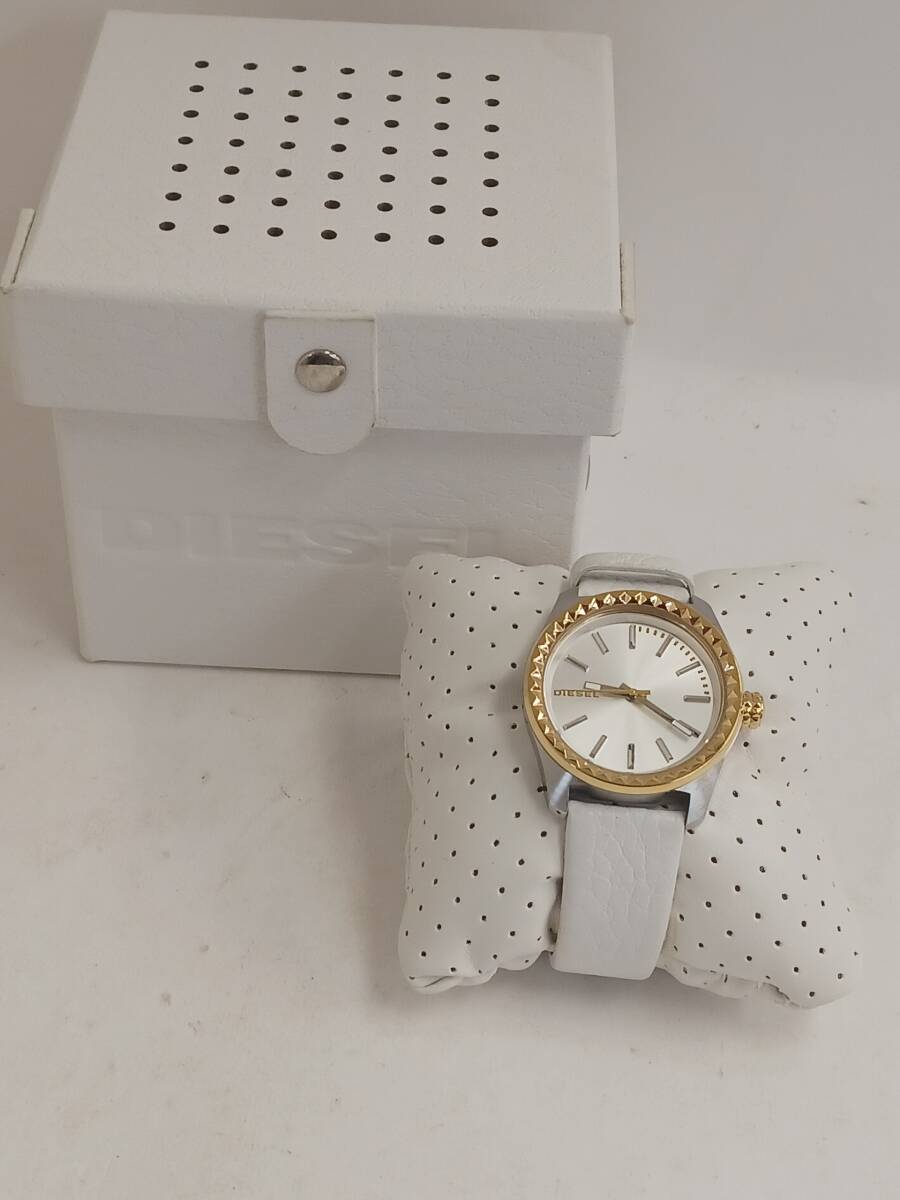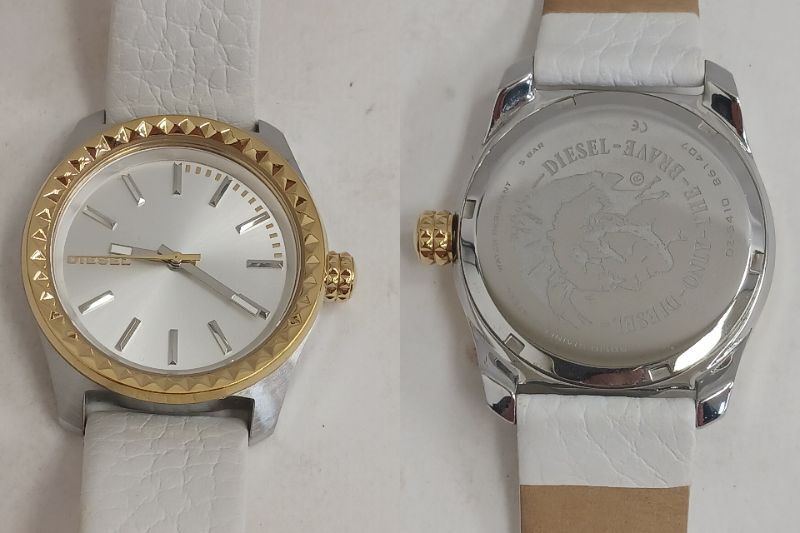 【中古美品】DIESEL ディーゼル レディース腕時計 KRAY KRAY DZ5410 動作未確認 ホワイト レザー BOX付 本物保証 正規品 人気モデル(す)