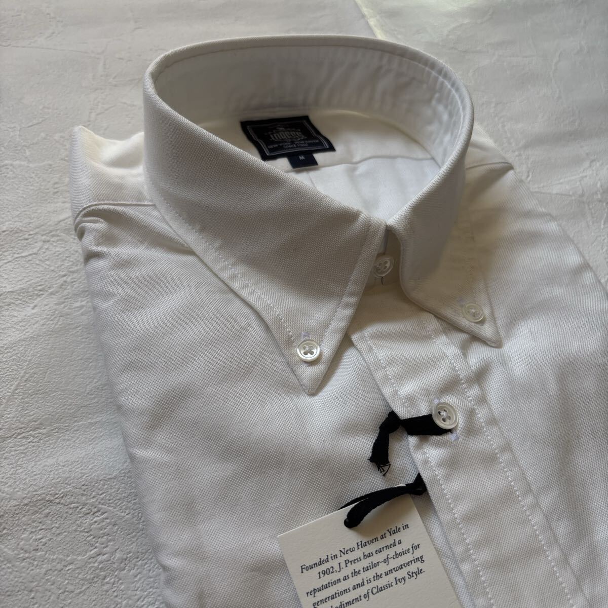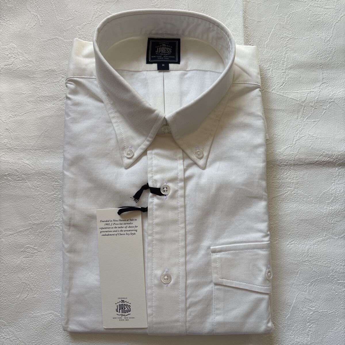 新品 タグ付き J.PRESS ジェイプレス 長袖 アービング オックスフォード ボタンダウンシャツ ホワイト 白系 Mサイズ 綿100%