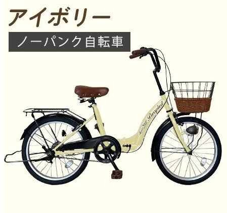 ノーパンク コンパクトシティーサイクル低床軽快車20インチ シティサイクル 折りたたみ自転車 TS20M-NP アイボリー AIJYU CYCLE