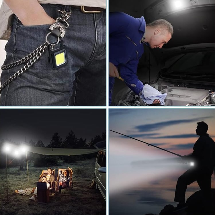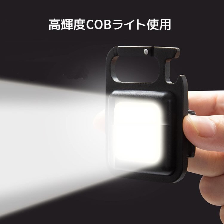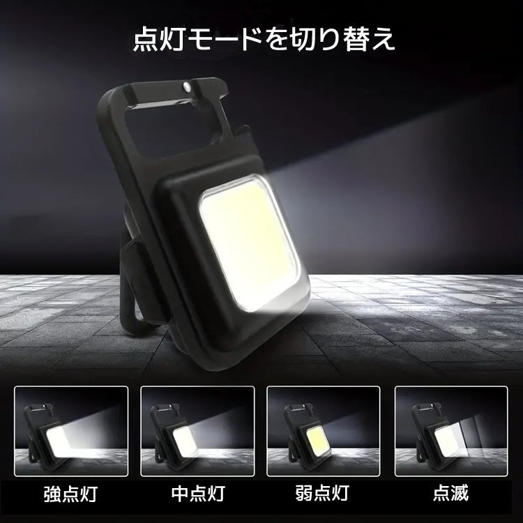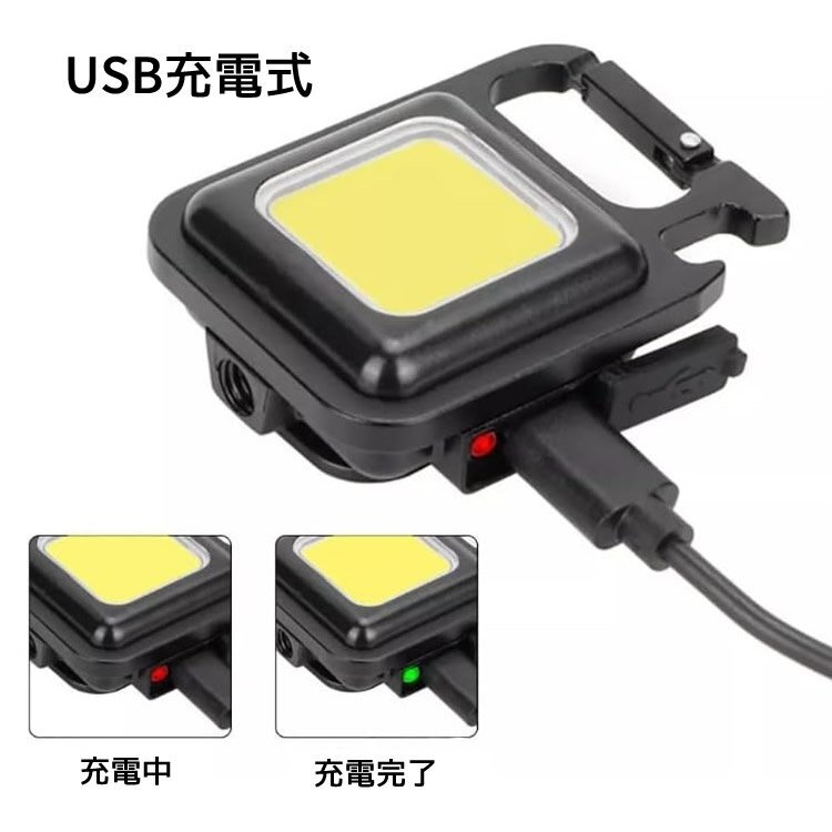 ◆キーリング式COBライト Type-C充電式 4つの点灯モード 磁石付き 懐中電灯 作業灯 高輝度LED投光器 アウトドア キャンプ ランニング 停電 カラビナ 栓抜き 防災に KRCOB500