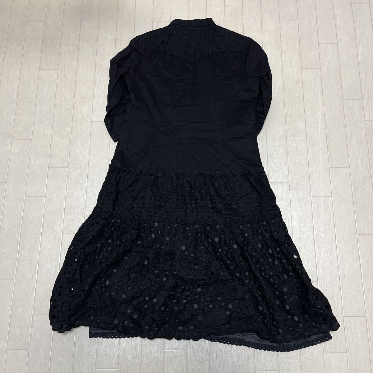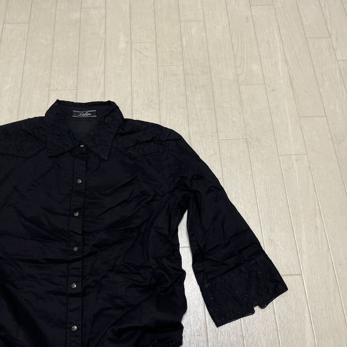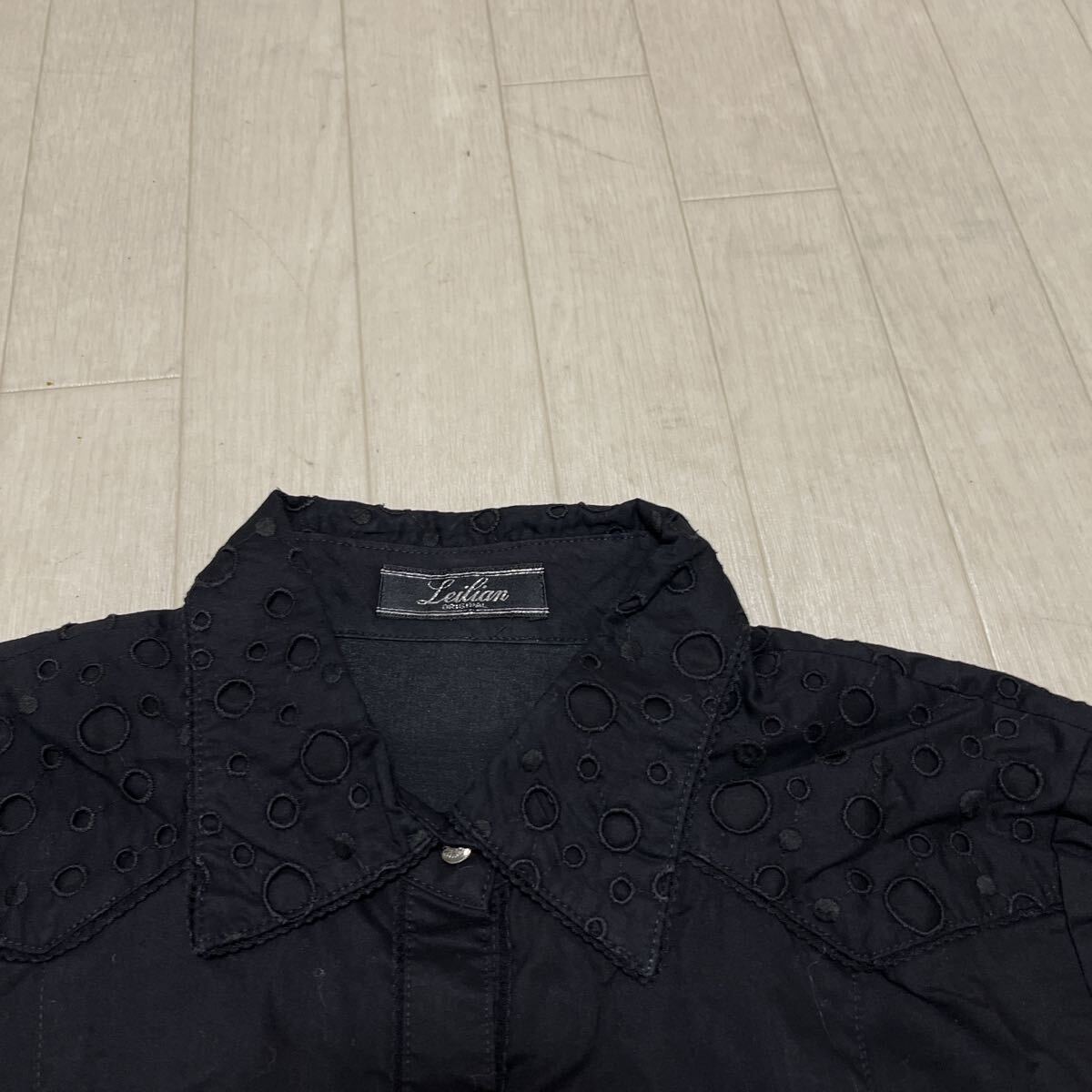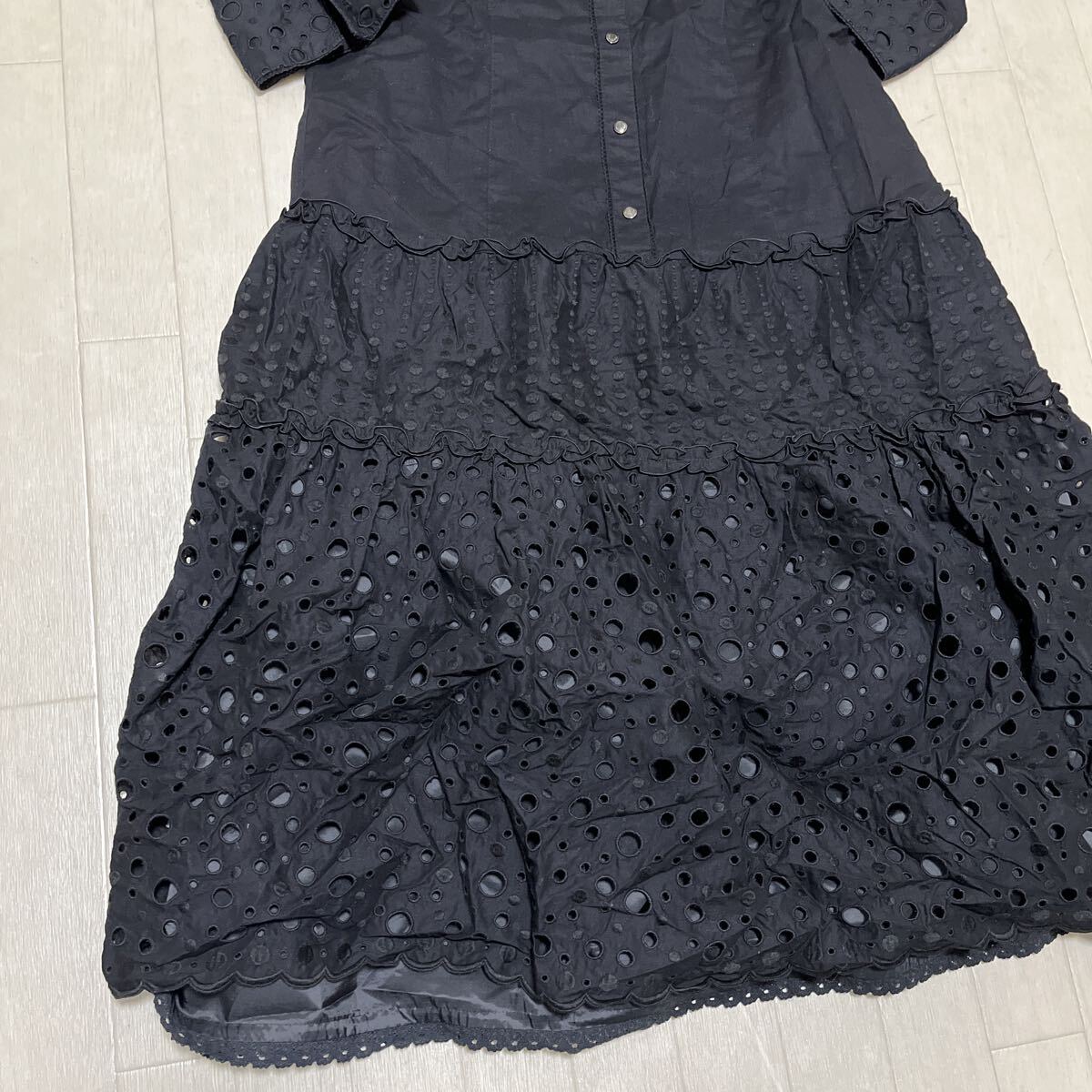 和853★ Leilian レリアン 7分袖 ロングワンピース パンチング 刺繍 ハーフボタン 11 ブラック レディース