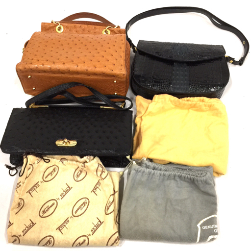 1円 LORENZA オーストリッチ レザー 2way ショルダーバッグ / ワンハンドルバッグ 他 クロコダイル 等 計3点 |