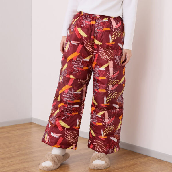 内 容 | ■モリリン 軽くてあったか ホワイトダックダウン 羽毛パンツ ■サイズ M-L ■素材 ・表側:ポリエステル100% ・裏側:ポリエステル100% ・中わた:ダウン85%、フェザー15% ・別布(フリース):ポリエステル100% ■詳細 ・ボトムウエスト:総ゴム、ドローストリング入り ■カラー ワイン ◆参考価格 15400円相当 こだわりの羽毛もさることながら、機能性、ファッション性にも優れた、 寒い季節に重宝しそうなアイテム。 パジャマの上からでも穿ける大きめサイズで、男女兼用で着用でき、 ゆったりリラックスしたおうち時間にぴったり。 ウエストは総ゴム仕様で、さらにドローストリング入りなのでフィットさせやすい仕様です。 裾はフリース仕立てで足首まで暖か。 後ろ側には便利なポケット付きで、 ポケットの内側甲に当たる部分にもフリース素材を使用しました。 ご家庭の洗濯機でお洗濯(ネット使用)可能なので、清潔に使えます。 お家時間も楽しくハッピーに過ごしていただきたい、という気持ちを込めてデザインした、 シックでおしゃれな柄もポイント! |