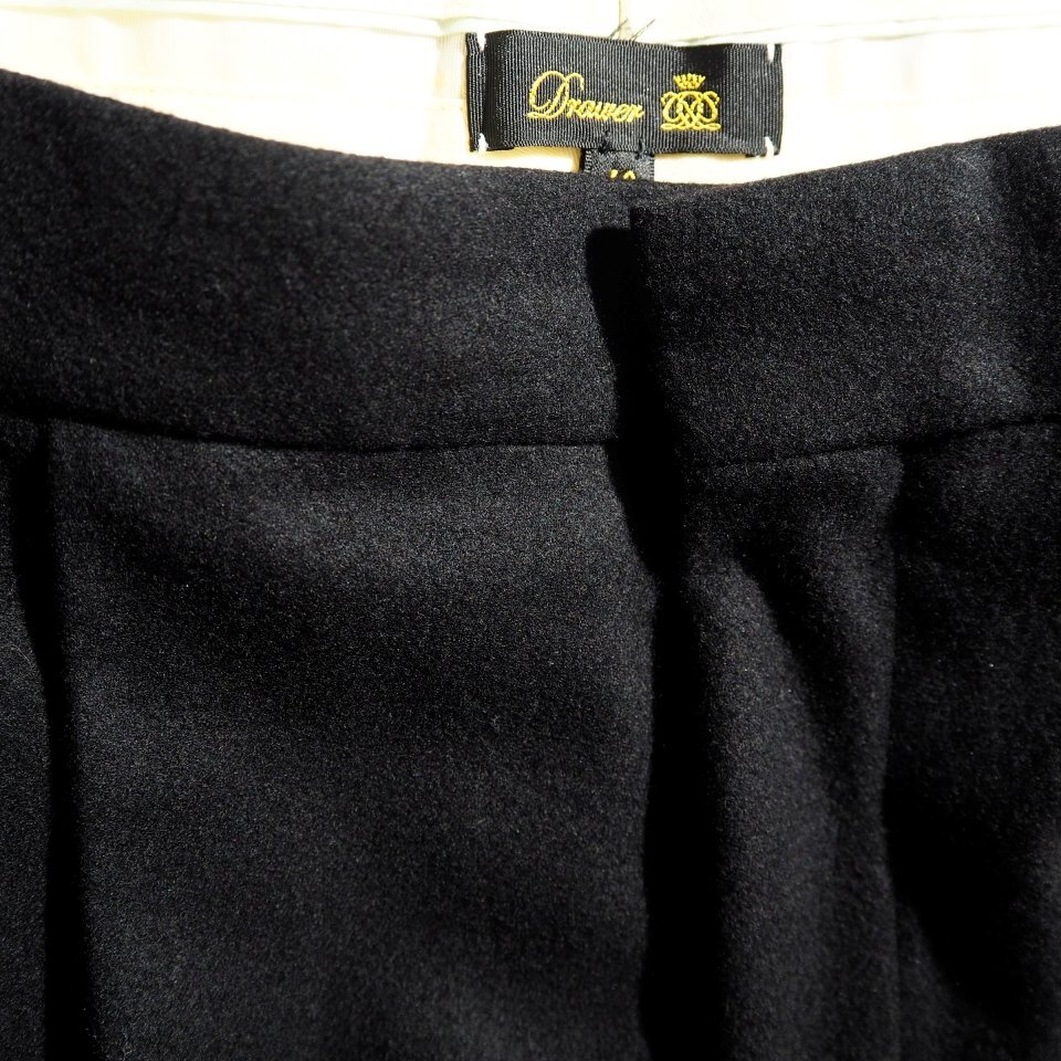 P5716f4 ▼Drawer ドゥロワー▼ ウールフラノ タックパンツ ブラック 40 / 6514-236-1050 ベルトレス テーパード スラックス 黒 秋冬 rb