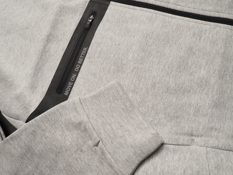 オールシーズン対応可能な中程度の厚さのコットンスウェット生地を使用。ポケット切替えとアームのエンブレムがアクセントになっています。