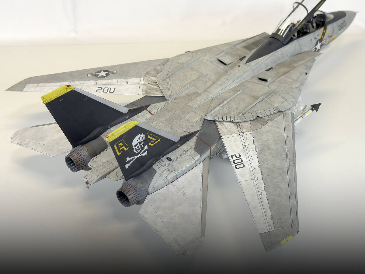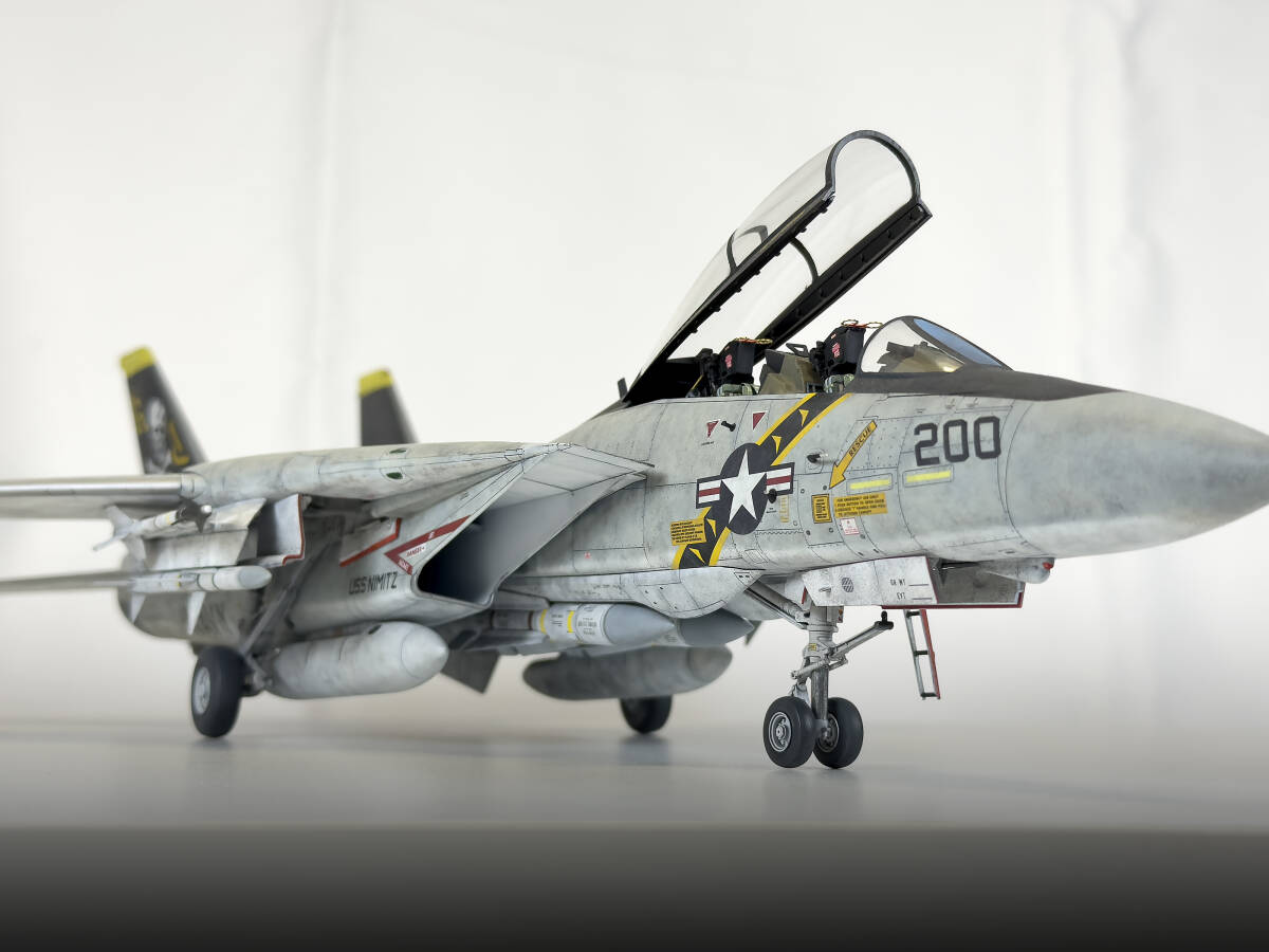 この度は当オークションを御覧いただき、ありがとうございます 本商品は、 【タミヤ】1/48 グラマン F-14A トムキャット を、各部改修工作したキットです ■作業内容 ◯ 基本工作(バリ取り・合わせ目処理・ヒケ処理) ◯ 黒サフをベース塗装後に機体各部をパネルライン毎にグラデーション塗装 ◯ エナメル塗料でウォッシング処理後に、オイル汚れや塗膜劣化部分等を油彩等各種マテリアルにてリアルウォッシング ◯ ツヤ消しクリアにてオーバーコート ◯ タミヤ製ディテールアップパーツを使用しています ◯ コックピットはQuinta Studio(クインタスタジオ)製 内装3Dデカールに換装 ■サイズ(参考程度) ◯ 1/48スケール ◯ 全長:400mm ◯ 全幅:240mm (主翼展開時410mm) ◯ 全高:100mm ※ 商品の元箱・取扱い説明書は含まれません |
