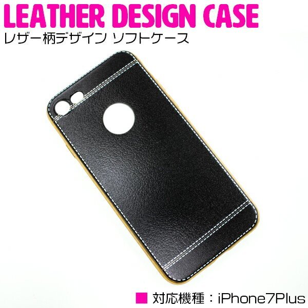 衝撃吸収に優れたTPU素材採用!iPhone7Plusケース iPhone7Plusカバー レザー柄デザイン ソフトケース ブラック/黒