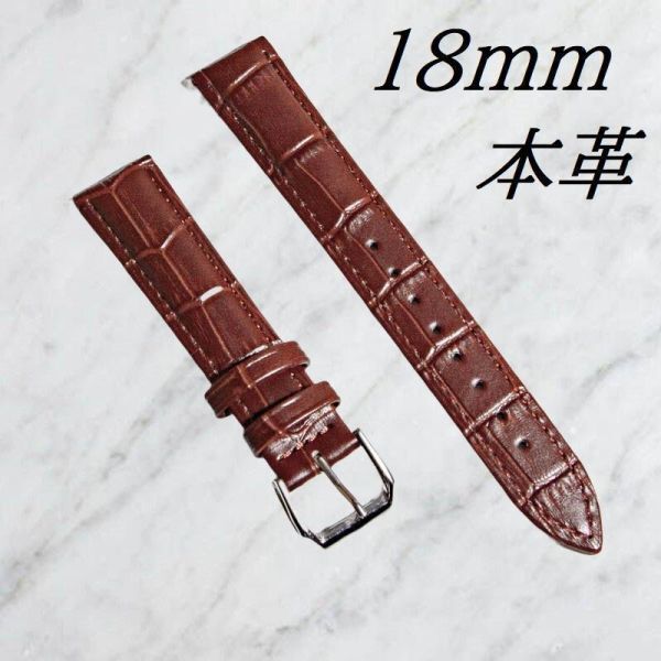 腕時計ベルト 牛皮製クロコ模様型押し 茶色 18mm 送料無料