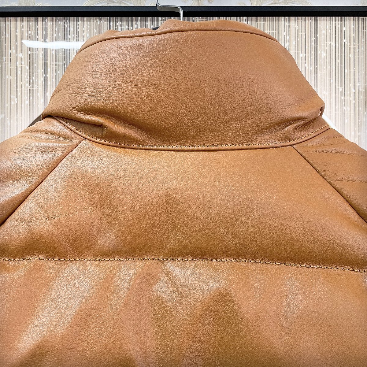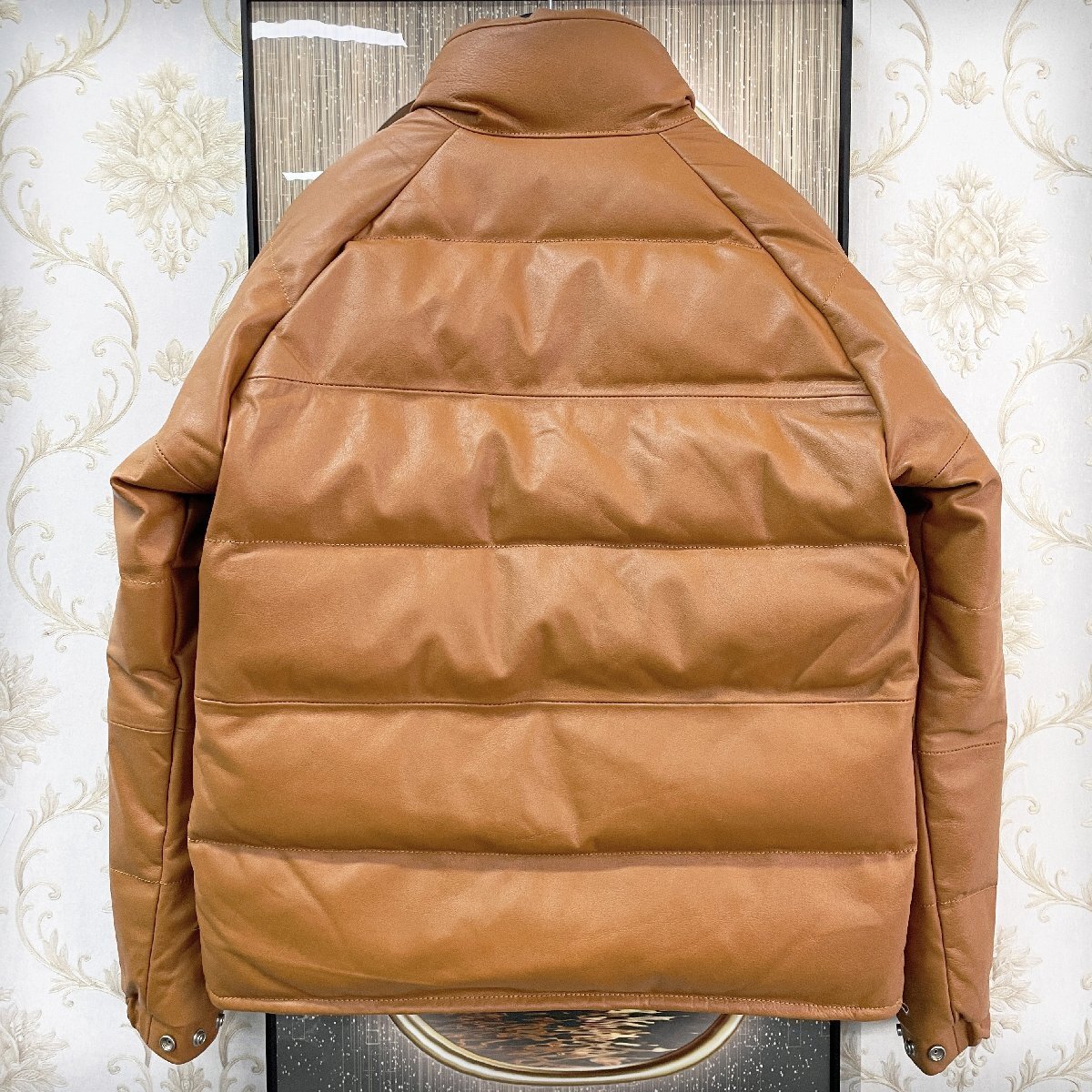 ヨーロッパ製・高級レザー・グースダウンジャケット。紳士定番のレザージャケットにワンポイントのアクセントを加えたお洒落な1枚。