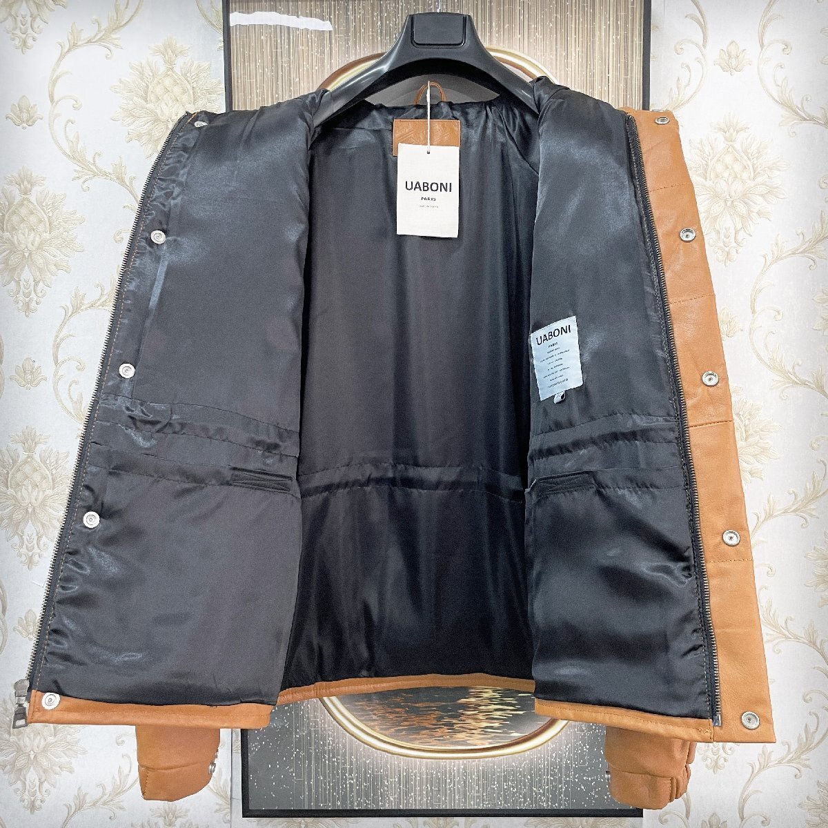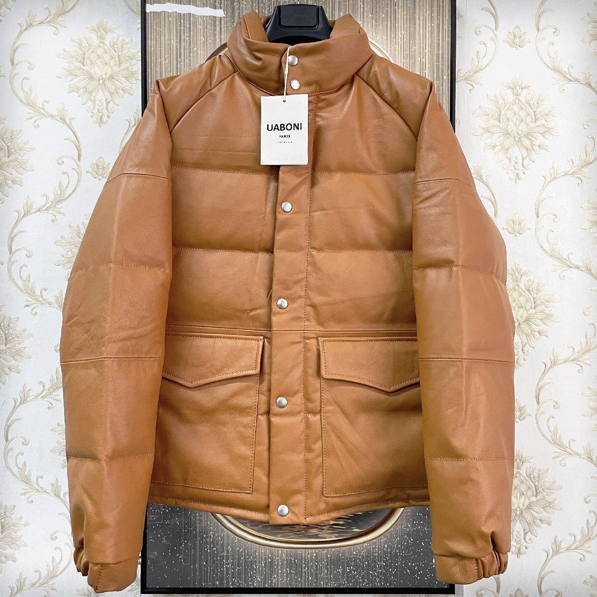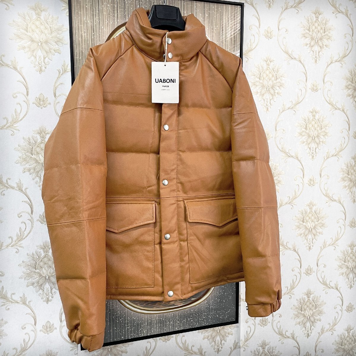 最高峰EU製&定価23万◆UABONI*Paris*極地防寒レザー・ダウンジャケット*ユアボニ*パリ発◆最上級羊革・ムートン グースダウン90% 2XL/52サイズ