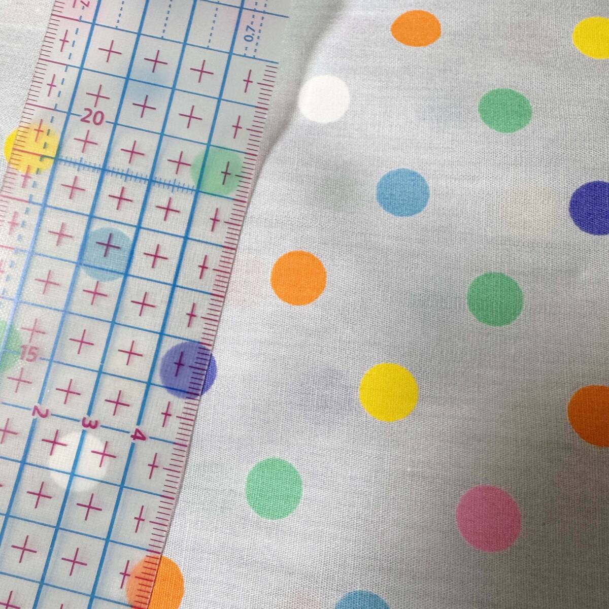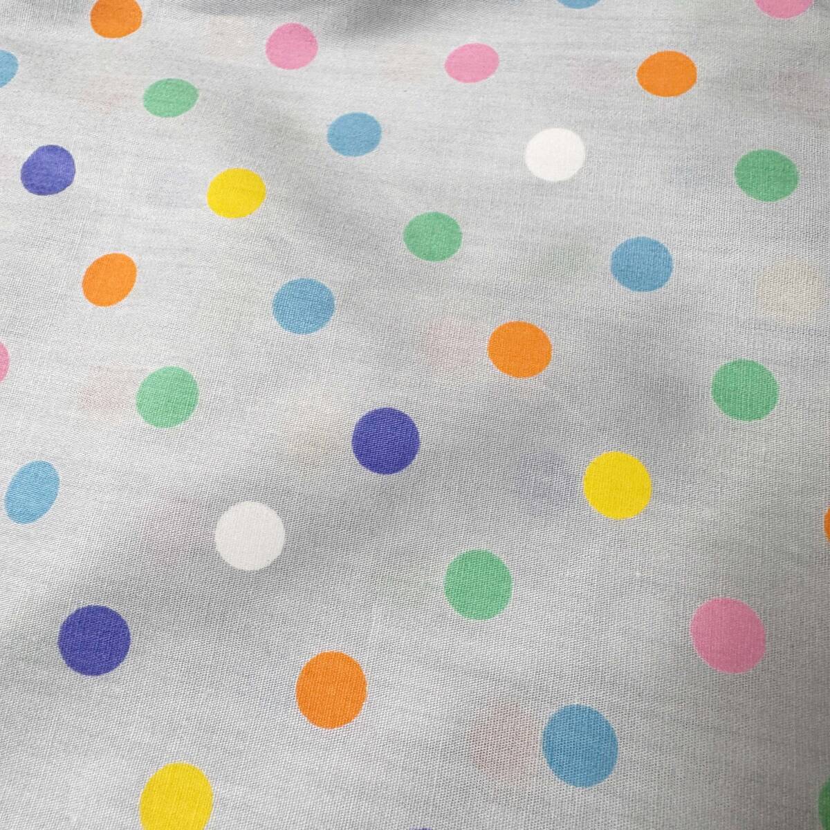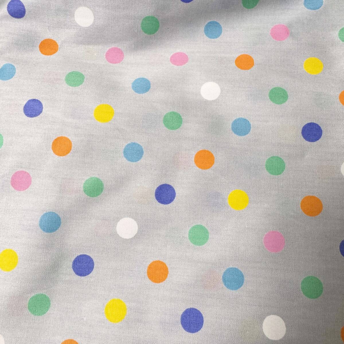 【ラス1】ドット柄カラフル水玉グレー地の生地シングル巾1mやや薄【再販しません】
