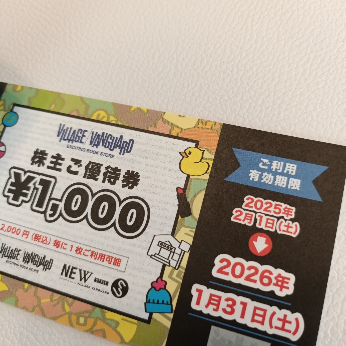 ヴィレッジヴァンガードの株主優待で貰った割引券、一部使用した残りの未使用分です。
